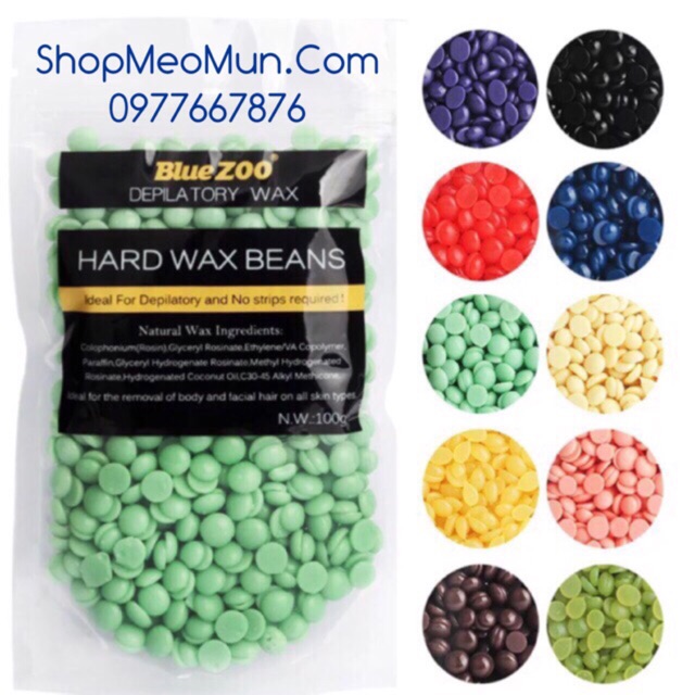 SÁP WAX LÔNG NÓNG HẠT ĐẬU 100gr Sáp wax lông nóng dễ dàng loại bỏ lông trên các vùng cơ thể ( bikini, nách, chân, tay, vùng mặt: ria mép, lông mặt) + THÀNH PHẦN: Sáp ong, vitamin E, coconut oil, tinh chất hoa oải hương… Tinh chất Lavender ( Hoa oải hương) có hương thơm dễ chịu thư giãn , có tác dụng thanh lọc da lấy đi các chất bẩn , độc tố tích tụ trong lỗ chân lông ,cung cấp thêm oxy cho làn da sau khi wax, giúp da sau khi wax nhanh phục hồi các nang lông . Bên cạnh đó, tinh dầu còn có đặc tính sát khuẩn và chống viêm , thích hợp để wax các vùng kín như bikini. + VỆ SINH DA: Vùng da cần wax nên được làm sạch ( để wax được dễ dàng , không dính bụi bẩn) + PHẠM VI SỬ DỤNG: Sử dụng được cho tất cả các vùng cơ thể như: bikini, nách, chân, tay, vùng mặt như ria méo, lông mặt, chân mày…. + CÁCH DÙNG: – Bỏ hạt vào trong nồi đun lửa trực tiếp hoặc bỏ vào lò vi sóng – Để sáp nguội khoảng 40 độ, thử sáp trên mu bàn tay – Dùng thanh gạt phết 1 lớp sáp mỏng phủ kín vùng lông cần wax, theo chiều lông mọc. – Sau đó, dùng que sáp cạy 1 đầu sáp và giật thật mạnh và nhanh theo hướng ngược chiều lông + LƯU Ý: Thử sáp trên mu bàn tay trước khi wax. ( tránh tình trạng sáp còn quá nóng, có thể gây bỏng) Có thể bôi mỡ trăn sau khi wax để làm chậm sự phát triển của lông. Không dùng trên vùng da đang bị viêm và tổn thương. Khối lượng: 100g
