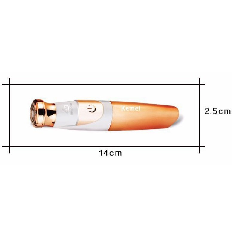 - Kích thước: 14 x 2,5 cm- Chất liệu: Nhựa ABS. an toàn khi sử dụng- Sử dụng pin: 1 viênpin 1xAA- Giúp loại bỏ những vùng lông nách, lông tay, lông chân...của bạn 1 cách dễ dàng. - Các phương pháp tẩy lông thông thường luôn khiến các chị em phụ nữ phiền toái do quá đau đớn, gây tổn thương nghiêm trọng đến vùng da khiến cho da khô, rạn da hay lông mọc lại dài và dày hơn. Với Máy Tẩy Lông Nách Kemei 577 chỉ với vài thao tác đơn giản, cho bạn tự tin diện các loại áo hở cánh và bikini thật quyến rũ - Kiểu dáng vô cùng nhỏ gọn tiện lợi, cấu tạo đơn giản dễ sử dụng, đầu cạo thiết kế theo dạng lưới hình tròn cho diện tích tiếp xúc với da rộng hơn, đồng thời giảm nhẹ áp lực lên da, không gây tổn thương, trầy xước vô cùng an toàn. Với máy tẩy lông Kemei cho dù là lông nách, lông tay, lông chân hay vùng kín cũng đều sử dụng dễ dàng, lại còn không cần tốn kém quá nhiều chi phí và thời gian. - Nhẹ nhàng lấy đi cả phần thân lông và chân lông và ngăn chúng mọc trở lại sau nhiều tuần.- Thiết kế thông minh, kích thước nhỏ gọn, tiện dụng, vừa vặn tay cầm, có thể mang theo sử dụng mọi lúc mọi nơi. - Sản phẩm tẩy nhanh tất cả các lông tơ dễ dàng mà không cần đến gương. - Không sử dụng lưỡi dao, cơ chế hoạt động xoay tròn của kemei Km-577 sẽ thu hút các sợi lông tơ giống như nam châm.