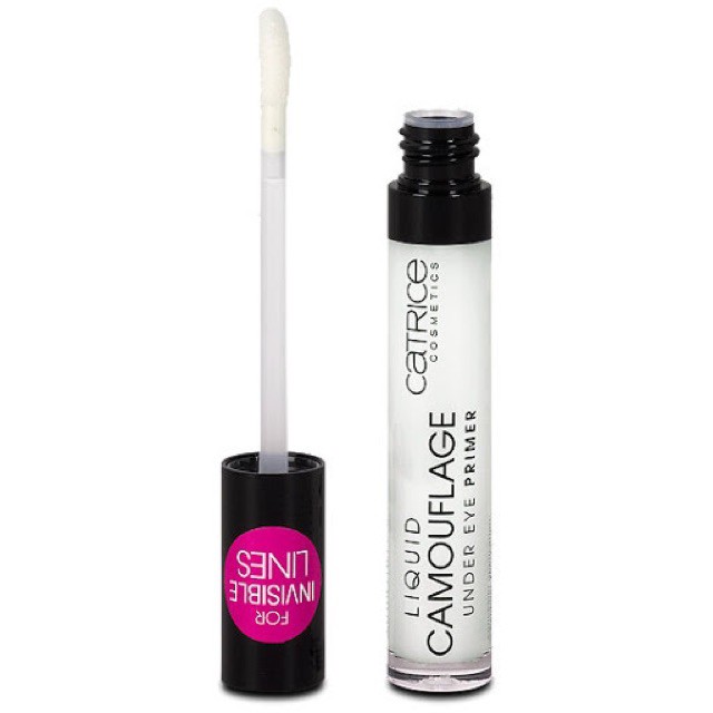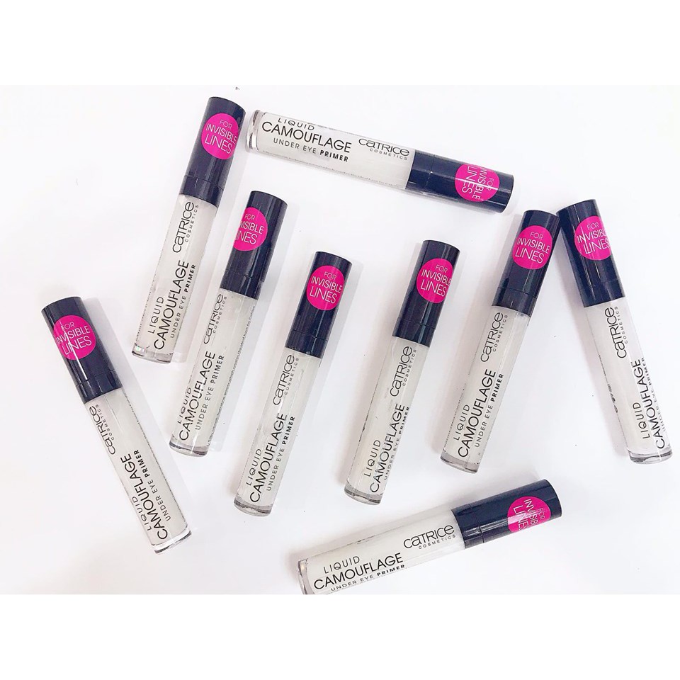 Giữ cho lớp phấn mắt bền màu, bám lâu hơn với công thức Oil – free, tạo độ ẩm vừa đủ cho vùng mắt, giảm khô mắt giúp phấn mắt đánh lên mịn hơn, không bị khô cakey hay vón thành những nếp nhăn. + Với thiết kế thông minh cây cọ dễ dàng lấy kem khi sử dụng. + Bạn nào mắt bị khô, nhăn hay có những dấu hiệu lão hoá thì dùng ngay base nhé! + Bên cạnh đó còn có tính năng chống nước nên không lo bị lem nhem đâu nè. + Kem Lót Mắt Catrice liquid camouflage under eye primer có thiết kế đầu cọ như đầu cọ của son kem nên dễ apply lên vùng bầu mắt cực kì. + Tạo hiệu ứng căng mịn. Giúp làm đều màu cho vùng da quanh mắt, cho các bước tán phấn mắt hay nhũ mắt theo sau sẽ lên màu chuẩn hơn và bám màu lâu hơn. Lại không hề gây nặng mặt xíu nào.