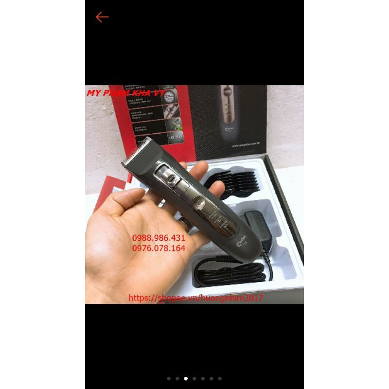 Tông Đơ Cắt Tóc Codos T9 - #Màu Đen Mẫu Mới 2020 Giới thiệu sản phẩm Tông đơ Cắt tóc Codos T9 Thông tin chi tiết tông đơ cắt tóc codos T9: ✔️ Hãng sản xuất : Codos ✔️ Tên sản phẩm : Tông đơ cắt tóc Codos T9 ✔️ Chất liệu : - Vỏ máy : Nhựa cao cấp - Lưỡi cố định : Thép cao cấp - Lưỡi di chuyển : Sứ Ceramic ✔️ Nguồn : Pin sạc, 5V, 1000mAh ✔️ Thời gian sạc đầy : 3 tiếng ✔️ Thời gian sử dụng : tối đa 270 phút ✔️ Nguồn điện cắm sạc : AC 100-240v, 50Hz ✔️ Công suất : 7W .✔️ Màu sắc : Trắng, xám đen ✔️ Kích thước máy : 17 x 4.5 x 4cm ✔️ Kích thước hộp đựng : 22 x 17 x 5.5cm ✔️ Khối lượng toàn bộ sản phẩm : 450 gram ✔️ Bộ sản phẩm gồm có : 1 máy + bộ vệ sinh ( 1 chổi và 1 lọ dầu ) + 2 cữ chỉnh với 4 đầu cữ ( 3, 6 , 9, 12 mm ). Lưu ý sử dụng và bảo quản: - Luôn tra dầu trước mỗi lần cắt - Sau khi cắt, nên thao lưỡi để vệ sinh sạch tốc, bụi - Bảo quản nơi kho giáo #tongdocodos #tongdocodost9 #codost9 #tongdot9 #tongdocattoccodos #tongdocattoccodost9