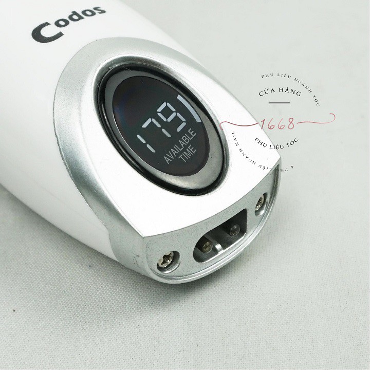 TÔNG ĐƠ CẮT TÓC CODOS CHC 960B GIÁ TỐT NHẤT Codos Pro Hair Clipper CHC-960B được thiết kế để sử dụng chuyên nghiệp với lưỡi dao bằng gốm cao cấp được cố định bằng hợp chất titan. Tông đơ cắt tóc Codos CHC-960 tích hợp với màn hình LCD hiển thị tình trạng sử dụng và tình trạng sạc pin. Chỉ có 2 giờ thời gian sạc pin bản có thể sử dụng lên tới 150 phút Màu sắc: trắng, đen Xuất xứ: chính hãng Nguồn điện: AC 100- 240V 50/60Hz 3. 5V DC 1000mA Pin sạc : Lithium Ion.Polymer 3.7v 1600mah Thời gian sạc: 2 giờ Thời gian sử dụng: 150 Phút. Đặc điểm nổi bật: - Tông đơ CHC-960 kiểu dáng sang trọng, độ bền cao, máy chạy cực êm, lưỡi sứ sắc bén. - Máy có hệ thống tăng cường tốc độ TUBO nhanh hơn, khỏe hơn 20% - Động cơ có bộ phận giảm ồn, máy chạy êm ái, ổn định. - Sử dụng pin đời mới nhất Lithium Ion, Polymer và có sạc cốc thuận tiện. - Lưỡi dao cắt bằng thép không gỉ tráng một lớp titan ( độ bền cao ). - Thiết kế tiên tiến với màn hình màu LCD báo tốc độ, thời lượng còn lại của pin. - Có thể dùng điện trực tiếp khi cần thiết : nguồn 2,4v nên rất an toàn. - Có lược căn độ dài tóc : 1 gá 3 - 6mm, 1 gá 9 - 12mm vừa có thể dùng có người lớn và trẻ em. - Công tắc thuận tiện cho cắt tóc bằng cả hai tay. - Sản phẩm còn có đầu thay và 1 chổi lông nhỏ giúp dễ dàng vệ sinh máy. 🌸Cam kết hàng chất lượng , rõ nguồn gốc , xuất xứ -------------------------------- ☎️☎️Hotline: 0969.613.716 - 0969.487.910 ✈️SHIP HÀNG COD TOÀN QUỐC 🏘Add: 98 Đường Số 1 KDC Nam Hùng Vương - P. An Lạc - Q. Bình Tân - TPHCM.