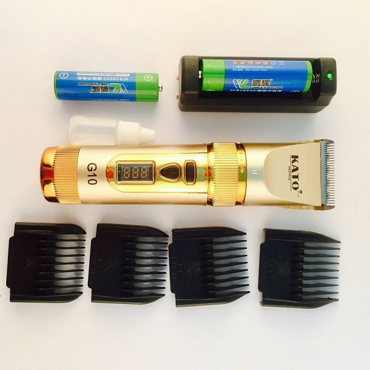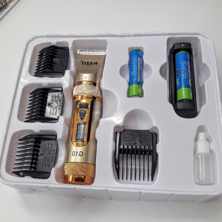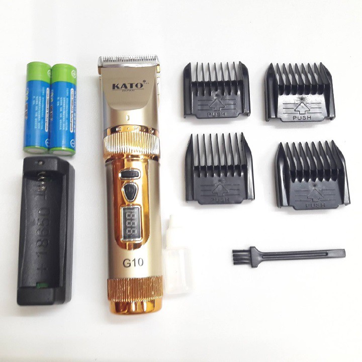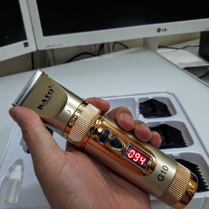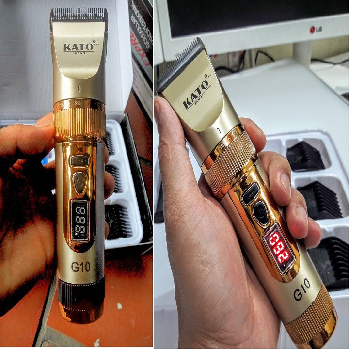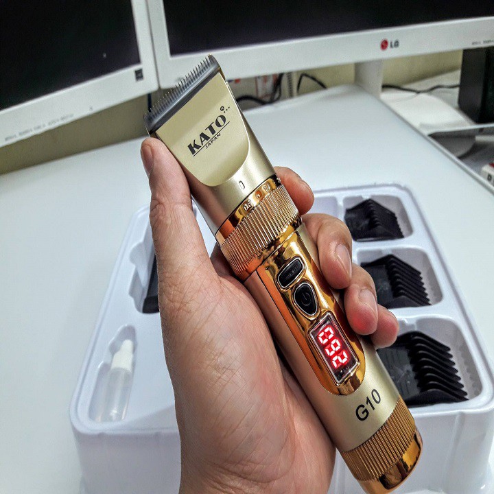 TÔNG ĐƠ KATO JAPAN G10 - SHIP COD TOÀN QUỐC 0976078164 - GIÁ 450K Thông tin chi tiết sản phẩm-Tông đơ cắt tóc cảm ứng KATO – G10 hiển thị phần trăm pin: – Bộ sản phẩm bao gồm: 1 máy + 1 bộ sạc + 1 chổi vệ sinh + 1 lọ dầu + 4 cữ căn độ dài với 4 cỡ (3,6,9,12 mm) + 2 pin + 1 hộp đựng – Điều chỉnh độ bám tóc từ 1.3 đến 1.9 mm – Điện áp: 100- 240V – Tần số : 50/60 Hz – Thời gian sạc: 4-5 giờ – Kích thước máy: 17 x 4.5 x 4 cm – Kích thước đóng hộp: 24.5 x 25 x 6.5 cm – Khối lượng đóng hộp: 0.85kg Tính năng sản phẩm: – Tông đơ kiểu dáng sang trọng, độ bền cao, máy chạy cực êm, lưỡi sắc bén. – Động cơ pivote chạy mạnh mẽ , ít tiếng ồn.- – Adapter sạc điện 220v, sử dụng pin sạc, đặc biệt có tặng kèm theo 1 viên pin sơ cua. – Có thể dùng điện trực tiếp khi cần thiết : nguồn 2,4v nên rất an toàn. – Lưỡi dao cố định làm bằng Titanium không gỉ cung cấp hiệu suất cắt tối đa, sau thời gian dài sử dụng vẫn có thể giữ độ sắc bén. – Có nấc chỉnh độ cao thấp của 2 lưỡi dao khi muốn chuyển cắt hay tỉa .. – Công tắc thuận tiện cho cắt tóc bằng cả hai tay. – Pin có hiển thị phần trăm giúp bạn theo dõi dễ dàng #TONGDOCATTOC #tongdokato #tongdog10 #kato #g10 #tongdokatog10 #katog10 #tongdo #tongdobarber #barber #barbershop
