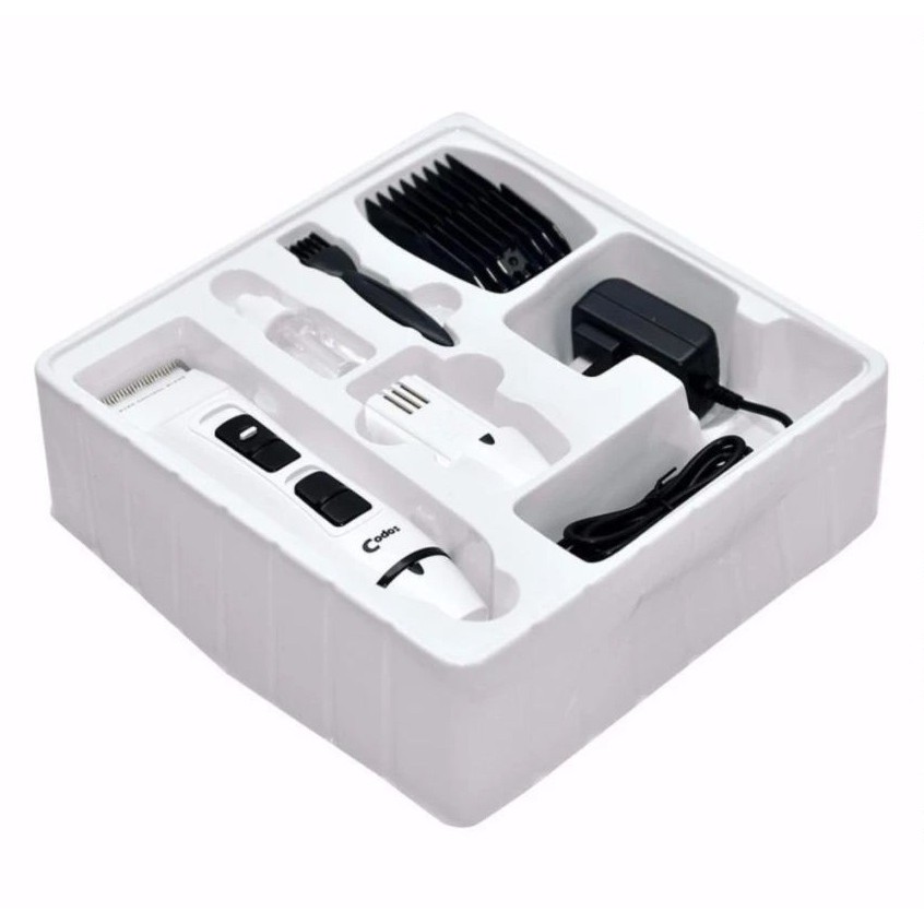 Bạn đã tìm hiểu lý do bé nhà sợ cắt tóc ? do động cơ máy kêu to , do lưỡi cắt cùn dẫn đến cắn tóc , do máy quá to ảnh hưởng đến tâm lý của bé…. Có thể do bạn chọn tông đơ cắt tóc chưa thực sự phù hợp! tất cả vấn đề đó sẽ được giải quyết ngay với sản phẩm mới chúng tôi giới thiệu hôm nay, sản phẩm tông đơ cắt tóc Codos T6 một sản phẩm tiêu biểu của thương hiệu tông đơ Codos nổi tiếng từ Hàn Quốc! Thông tin chi tiết sản phẩm tông đơ cắt tóc Codos T6 - Nhà sản xuất : Codos - Tên sản phẩm : Tông đơ Codos T6 - Chất liệu : - Vỏ máy : nhựa - Lưỡi cố định : thép cao cấp - Lưỡi di chuyển : sứ Ceramic - Nguồn : pin sạc - Pin : 900mAh - Điện áp : AC 110-220v, 50Hz - Công suất : 3W - Thời gian sạc đầy : 4-5 tiếng - Thời gian sử dụng : 90-180 phút liên tục. - Màu sắc : trắng phối hợp đen - Kích thước máy : 17 x 4.5 x 4 cm - Kích thước hộp đựng : 22 x 17 x 5.5 cm - Khối lượng toàn bộ sản phẩm : 450 gram - Bộ sản phẩm gồm có : 1 máy (pin kèm theo + pin sơ cua) + bộ vệ sinh ( 1 chổi và 1 lọ dầu ) + 2 lược chỉnh với 4 đầu cữ ( 3, 6 , 9, 12 mm ), Một số ưu điểm nổi bật của sản phẩm tông đơ cắt tóc Codos T6 Công nghệ sản xuất theo tiêu chuẩn Hàn Quốc rất tỉ mỉ, từng chi tiết nhỏ của máy đều được kiểm tra kỹ càng trước khi lắp ráp hoàn thiện để đem đến cho người tiêu dùng sản phẩm hoàn hảo nhất. có thể. Các chất liệu sử dụng cho từng bộ phận đều đạt chuẩn chất lượng, từ lưỡi cắt gồm có lưỡi cố định được làm từ thép cao cấp không bị sét gỉ, lưỡi di chuyển được làm từ chất liệu sứ Cenamic không bị mòn hay cùn kể cả thời gian sử dụng lâu dài. Đến vỏ ngoài của máy cũng rất chắc chắc với nhựa nguyên chất cứng cáp có thể chịu được va chạm và tác động nhẹ từ môi trường. Sự kết hợp ăn ý giữa 2 màu trắng và đen đã mang đến sản phẩm tông đơ Codos T6 vô cùng nổi bật và bắt mắt. Công suất máy bền bỉ với dung lượng pin lớn và thời gian sử dụng lâu dài.Động cơ hoạt động êm ái với 2 lưỡi cắt di chuyển trơn tru đều đặn giải quyết vấn đề cắn tóc khi cắt từ những sản phẩm thông thường khác. Kích thước thước vừa phải với trọng lượng tương đối cho bạn cảm giác rất đầm tay khi cầm giúp đưa tóc nhẹ nhàng mượt mà hơn. Công tắc tắt bật và công tắc điều chỉnh lưỡi cắt được đặt sát nhau ngay trên thân máy rất hợp lý, rất thuận tay người sử dụng. Nếu bạn muốn tìm kiếm một sản phẩm tông đơ cắt tóc cho bé chất lượng hãy lựa chọn Codos T6 Điểm đặc biệt của Codos T6 này là pin sạc có thể tháo rời và kèm theo 1 pin sơ cua cho dung lượng tăng gấp đôi rất phù hợp cho tiệm cắt tóc chuyên nghệp hay những người đi xuất khẩu lao động, ra nước ngoài công tác dài hạn.