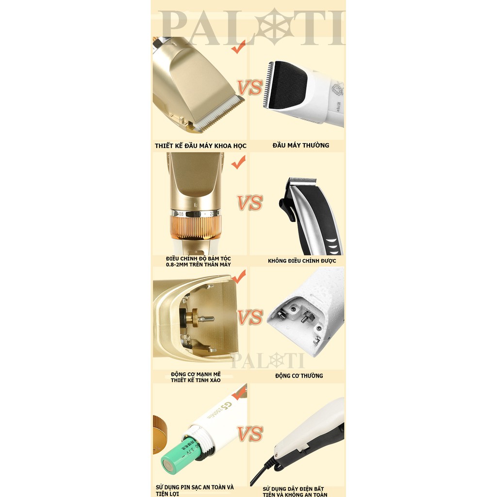 XẢ HÀNG! THANH LÝ! KHUYẾN MẠI! CỰC SỐC! GIAO HÀNG TOÀN QUỐC- THANH TOÁN TẠI NHÀ! Tăng đơ cắt tóc Chuyên Nghiệp KATO G5 Hiện nay việc cắt tóc tại nhà đã dần trở nên phổ biến, vừa tiết kiệm được chi phí mà lại không mất nhiều thời gian so với việc phải đợi ở tiệm cả giờ đồng hồ.Vì vậy hãy đến với shop để chọn cho mình một loại tông đơ phù hợp cho việc cắt tóc tại gia, đó là Tông đơ cắt tóc chuyên nghiệp G5 có thể cắt tóc cho cả trẻ em và người lớn, có thể dùng để cắt tỉa lông cho thú cưng với công nghệ mới không gây ồn, không dây điện lằng nhằng,an toàn tuyết đối dung lượng Pin 200 phút chắc chắc sẽ làm hài lòng tất cả mọi người. * THÔNG SỐ KỸ THUẬT CỦA TÔNG ĐƠ CẮT TÓC KATO G5: – Bộ sản phẩm bao gồm: 1 máy + 1 bộ sạc + 1 chổi vệ sinh + 1 lọ dầu + 4 cỡ (3,6,9,12 mm) + 2 pin + 1 hộp đựng – Điều chỉnh độ bám tóc từ 0.8 đến 2 mm – Công suất: 3W – Điện áp: 100- 240V – Tần số : 50/60 Hz – Thời gian sạc: 4-5 giờ– Sạc rời pin thông minh báo đèn xanh khi pin đầy. – Kích thước máy: 17 x 4.5 x 4 cm - Pin: Gồm 2 Pin +ICR mAh 3.7V- * ƯU ĐIỂM CỦA TÔNG ĐƠ CẮT TÓC KATO G5 - Tông đơ cắt tóc G5 sau 5 giờ sạc thời gian sử dụng lên đến 200 phút - Kiểu dàng nhỏ gọn vừa tay thuần tiện cho việc sử dụng bằng cả hai tay. - Thiết kế khoa học công tắc điều chỉnh dễ dàng. - Được thiết kế chạy pằng pin không cần dây nên rất thuận tiện cho việc cắt bất kỳ nơi đâu mà không cần nhiều đồ đạc, hạn chế rủi ro so với dùng điện trực tiếp. * HƯỚNG DẪN SỬ DỤNG TÔNG ĐƠ CẮT TÓC Chuyên Nghiệp KATO G5: - Khi dùng nên tra dầu vào lưỡi để máy hoạt đọng êm và trơ tru hơn. - Vệ sinh tông đơ sạch sẽ và bảo quản nơi khô ráo. - Tránh xa các chất tẩy rửa. - Ngắt sạc khi pin đầy tránh chai pin - Sử dụng công tắc để lắp đầu máy. ► CAM KẾT XỬ LÝ NHỮNG VẤN ĐỀ KHÁCH GẶP PHẢI. ► BẢO HÀNH 1 ĐỔI 1 TRONG 7 NGÀY NẾU CÓ LỖI ► LÀM VIỆC TẤT CẢ CÁC NGÀY TRONG TUẦN. ► DỊCH VỤ UY TÍN - PHỤC VỤ NHIỆT TÌNH - ĐẢM BẢO 100% KHÁCH HÀNG HÀI LÒNG. #tongdocattoc #tongdo #tôngđơ #tôngđơcắttóc #tăngđơ #tăngđơcắttóc #tangdo #tongdogiare #tangdohottocchuyennghiep #tongdohottoc #tangdohottoc #tongdocattoctreem #tongdohottocnguoilon #tongdocattocnam #tôngđơcắttócchobé#tôngđơcắttócgiađình#tôngđơcắttócchuyênnghiệp