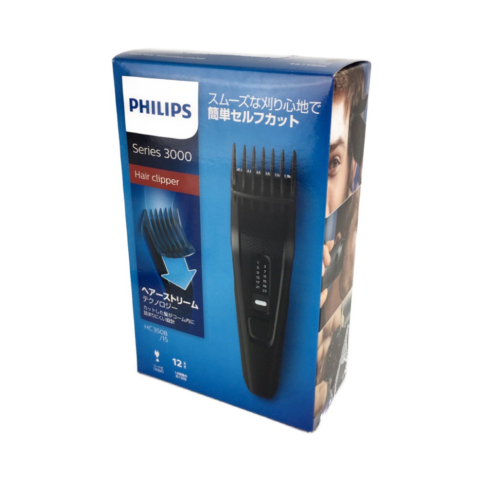Tông đơ cắt tóc Philips Series 3000 Nhật Bản Tông đơ cắt tóc Philips Series 3000 HC3508/15 là mẫu Tông đơ mới của Philips Nhật Bản. Sản phẩm ra đời thay thế cho dòng sản phẩm Philips HC 3412/15 trước đó. Máy nằm trong phân khúc phổ thông, được thay đổi thiết kế hoàn toàn so với sản phầm cùng phân khúc trước đó. Tông đơ Philips HC3508/15 có thể điều chỉnh chiều dài 0,5mm, 12 bước từ 1 đến 23mm (1,3,5,7,9,11,13,15,17,19,21,23mm) giúp chúng ta có thể tự điều chỉnh chiều dài cần cắt rất dễ dàng. - Dễ dàng để làm sạch - Kiểu tháo lắp nhanh cho phép tháo đầu và làm sạch lưỡi dao. - Dễ dàng điều chỉnh chiều dài bước cắt - Có thể sử dụng cả không dây và có dây THÔNG SỐ KỸ THUẬT -Kích thước: 5 x 5,6 x 18,8 cm -Nguồn : AC100-240V、50/60Hz -Thời gian sạc: 8 tiếng -Thời gian sử dụng Pin sạc : 45 phút liên tục -Trọng Lượng: 156g -Trọng lượng cơ thể (kg): 0,125 -Loại pin: Niken kim loại -Chiều dài dây 1,8m -Lưỡi rộng 41mm Tông đơ cắt tóc Philips Series 3000 Nhật Bản được bán tại thị trường Nhật Bản, và được chúng tôi nhập khẩu trực tiếp. Đảm bảo nguồn gốc và chất lượng sản phẩm. Sản phẩm được bảo hành 2 năm toàn cầu tại các cơ sở bảo hành của Philips trên toàn thế giới. #philips #tôngđơ #tôngđơcắttóc #philips3000 #HC3508/15 #tôngđơphilips