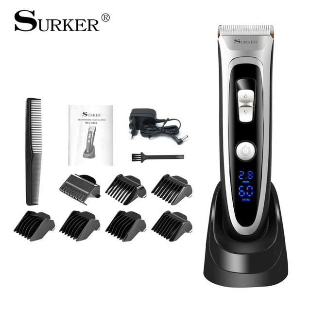 Tông đơ cắt tóc chuyên nghiệp lưỡi gốm + titalium Công nghệ MOTOUCH tiếng ồn nhỏ phù hợp baby Đèn LED báo thời gian sử dụng pin Đèn báo độ dài lưỡi cao cấp Pin lLITHIUM công nghệ sạc nhanh 1,5H dùng 60 phút Công suất máy: 3W Điện áp: 110-240v Kèm theo có 1 sạc cốc tiện dụng TÔNG ĐƠ SURKER 688Tính năng: Với kỹ thuật số LED hiển thị, mà có thể trực quan hiển thị điều chỉnh tiền phạt cắt chiều dài, lượng pin còn lại mức độ riêng biệt bởi các đơn vị của mm và phút. Titan và gốm chuyên nghiệp có thể tháo rời lưỡi, độ chính xác cao và có thể được có thể giặt. Lưỡi dao sắc và động cơ mạnh mẽ, có thể cắt tóc của bạn nhanh chóng, không có tóc nhận được bị mắc kẹt và không làm tổn thương làn da của bạn. Thiết kế tiếng ồn thấp, không có ear-piercing âm thanh, cũng không làm ảnh hưởng đến những người khác trong quá trình hoạt động. Cắt có thể điều chỉnh chiều dài switch lưỡi cho tinh chỉnh từ 0.8mm-1.5mm-2.2mm-2.8mm, mà có thể tạo ra kiểu tóc khác nhau.