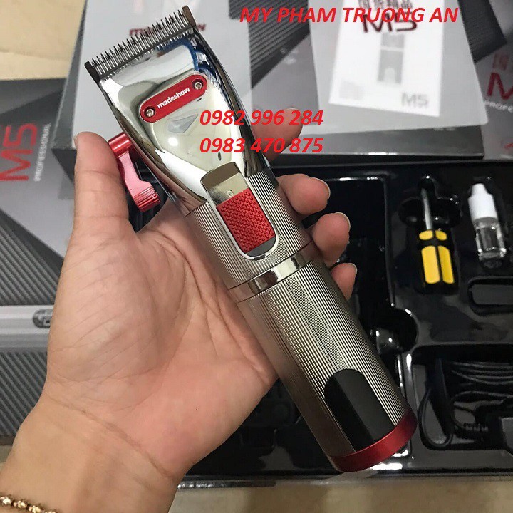 Siêu phẩm tông đơ Madeshow M5 trình làng💈 ♨️♨️♨️♨️♨️giá chỉ #1350k♨️♨️♨️♨️ :point_right: 10 cữ fade 1,5mm 3mm 4,5mm 6mm 10mm 13mm 16mm 19mm 22mm 25mm cữ đẹp bám tóc :point_right: pin màn hiển thị chạy liên tục 4 giờ 👉2 tubor tốc độ , mạnh lên đến 9000rpm 👉lưỡi quá chuẩn sắc bén k cần làm gì :point_right: độ bền máy khỏi bàn bh 5 tháng ae nha :point_right: nhiều phụ kiện đi kèm nữa chứ 🥰🥰 👉tông đơ đang mua nhất đời thợ tóc LIÊN HỆ 082 96 284