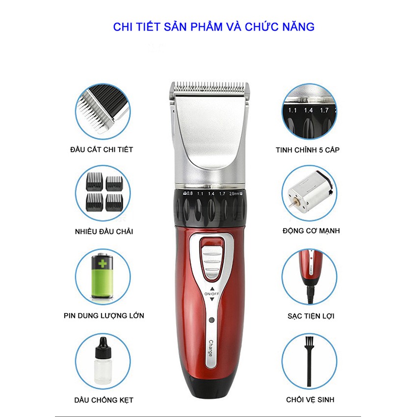 XẢ HÀNG! THANH LÝ! KHUYẾN MẠI! CỰC SỐC! Tông Đơ Cắt Tóc Gia Đình JC 0817 Trên thị trường hiện có rất nhiều loại tông đơ với nhiều mức giá khác nhau, và bạn đang muốn chọn cho mình một loại tông đơ phù hợp với nhu cầu cũng như giá cả hợp lý. Shop xin giới thiệu một loại tông đơ với thiết kế nhỏ gọn, chắc chắn mà giá cả phải chăng, đó là Tông đơ cắt tóc gia đình Jichen 0817. * Thông tin chi tiết sản phẩm tông đơ cắt tóc gia đình JICHEN 0817: - Chất liệu : + Vỏ máy : nhựa cao cấp + Lưỡi cắt: hợp kim thép - Màu sắc : đỏ pha bạc - Kích thước thân máy( D x R x C ) : 17.5 x 4.5 x 4 cm - Kích thước đóng gói ( D x R x C ): 20 x 12 x 5 cm - Khối lượng đóng gói : 0.3kg - Loại tông đơ : pin sạc - Nguồn pin : 220 – 240v, 50/60 Hz - Công suất : 3W - Thời gian sạc đầy : 3-4 tiếng. - Thời gian sử dụng liên tục : 60 phút - Bộ sản phẩm đầy đủ gồm : 1 tông đơ + 1 lọ dầu dưỡng máy + 1 chổi vệ sinh + 1 dây sạc + 3 gá lược chỉnh với nhiều kích cỡ + 1 lược chải. * Đặc Điểm nổi bật của tông đơ cắt tóc gia đình JICHEN 0817: - Tông đơ có thiết kế nhỏ gọn với các phần chứa năng được bố trí rõ ràng dễ phân biệt nhưng vẫn rất khoa học tiện dụng, giúp chúng ta có thể dễ dàng sử dụng. - Lưỡi dao được chế tạo từ hợp kim thép siêu bền bỉ, động cơ êm nhẹ, không gây ồn và độ rung thấp thích hợp để cắt tóc cho bé. - Đèn led báo ngay dưới nút bật tắt thông báo rõ tình trạng sử dụng và sạc pin. * Tông Đơ Cắt tóc Cho Bé JICHEN 0817 Cắt Cho bé có tốt không? - Máy được thiết kế khoa học sử dụng dễ dàng, có thể sử dụng được cả 2 tay. - Máy sử dụng pin sạc với dung lượng pin khi sạc đầy lên tới 600mAh tiện lợi để cắt tóc cho bé mà không phải cắm điện hay sử dụng dây điện gây nguy hiểm khi dùng, chỉ cần 5-15 phút là có thể cắt xong cho bé. * Lưu ý khi sử dụng sản phẩm tông đơ cắt tóc gia đình JC 0817: - Sạc đủ pin để sử dụng. - Tránh sử dụng máy cạn kiệt pin. - Không nên vừa sạc vừa sử dụng, như vậy vừa nguy hiểm vừa nhanh hỏng máy. - Vệ sinh máy sau mỗi lần sử dụng. #tôngđơJC #tongdo #tôngđơcắttóc #cattoc #tôngđơcaocấp #tăngđơ #tôngđơcắttócchobé #tôngđơcắttócchuyênnghiệp #tôngđơ #tôngđơgiađình #tăngđơcắttóc #tôngđơhớttóc #tôngđơcắttócnam #tôngđơcodos #tôngđơcắttócgiárẻ #tôngđơcắttóctrẻem #máycắttóc #tôngđơcắttócgiađình