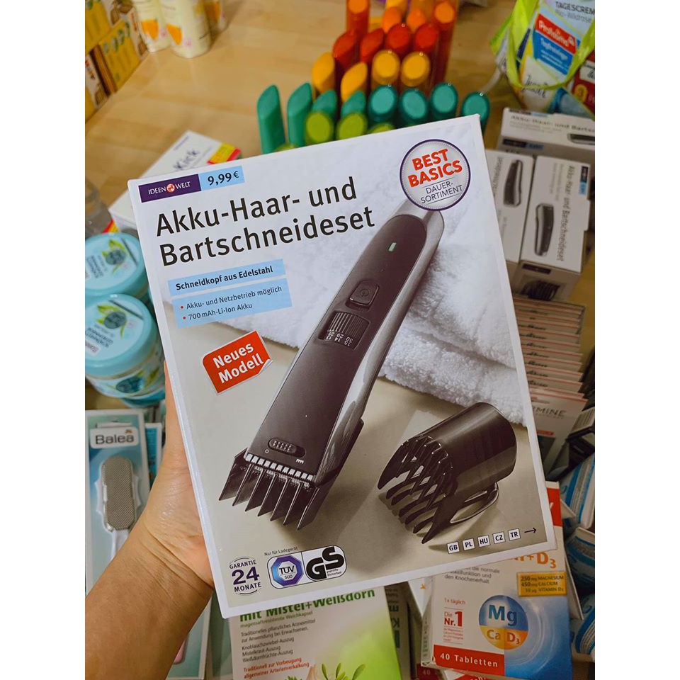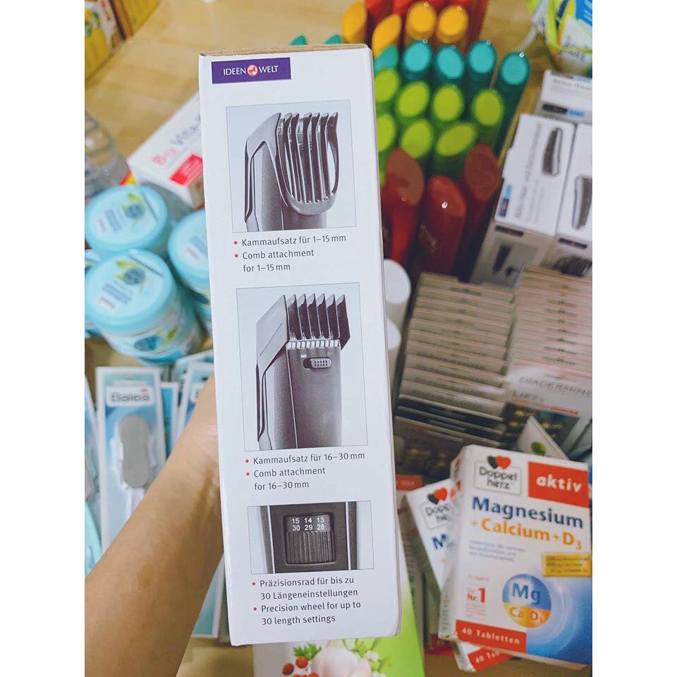 #TÔNG #ĐƠ #CẮT #TÓC #IDEEN #WELT- NỘI ĐỊA #ĐỨC • Tính năng sản phẩm: - 8 cài đặt độ dài có thể khóa cố định: 4 đến 32 mm hoặc 0,5 mm không có lược - Đầu cắt và lược lượn tròn trượt êm ái trên da mà không làm xước ra, giúp cắt tóc an toàn và dễ chịu mỗi lần. - Sử dụng pin sạc và điện giúp cung cấp nguồn điện ổn định - Lưỡi cắt không cần dầu bôi trơn, để dễ bảo trì và tiết kiệm thời gian. - Mô tơ êm ái được thiết kế để hoạt vận hành mạnh mẽ nhưng ít rung. Máy tỉa tóc gia đình của Ideen Welt là chiếc máy tỉa tóc êm ái nhất cho cả người lớn và trẻ em. - Pin bên trong, kéo dài một thời gian dài (tuổi thọ pin khoảng 4 giờ). Pin được sạc bằng bộ sạc kèm máy. Đầu cắt tóc và râu tông đơ được làm bằng thép không gỉ và dễ dàng để làm sạch. Các phụ kiện bao gồm: bộ sạc, chiếc lược, bàn chải làm sạch, dầu lưỡi, cữ cắt.