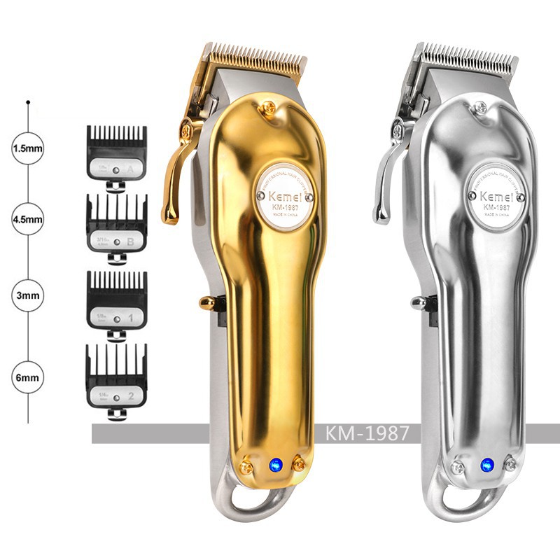 *Thông tin chi tiết: -Thương hiệu: Kemei - Model: 1987 -Dung lượng pin : 1000mAh -Thời gian sạc : 3 giờ full cho phép sử dụng liên tục trong vòng 300 phút theo thông số chung của nhà sản xuất. -Lưỡi làm bằng chất liệu thép cacbon siêu bền siêu bén, có thể độ qua lưỡi sứ cắt bao mát. -Vỏ máy và thân làm bằng chất liệu inox sáng, nhìn cực chất và chắc chắn, hơn hẳn các đời 1996, 1997. -Động cơ chạy cực kỳ êm ái và mạnh mẽ, cho đường cắt rất ngọt, nét. -Công suất: 8w