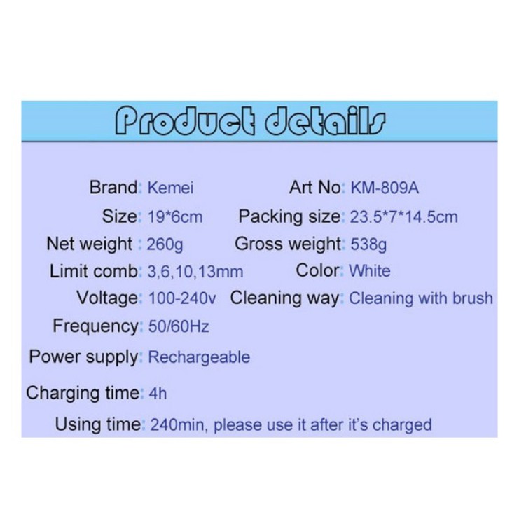 Sản phẩm Tông Đơ Cắt Tóc Kemei 809A Kèm Bộ Phụ Kiện hiện đang được bán tại Shopee.