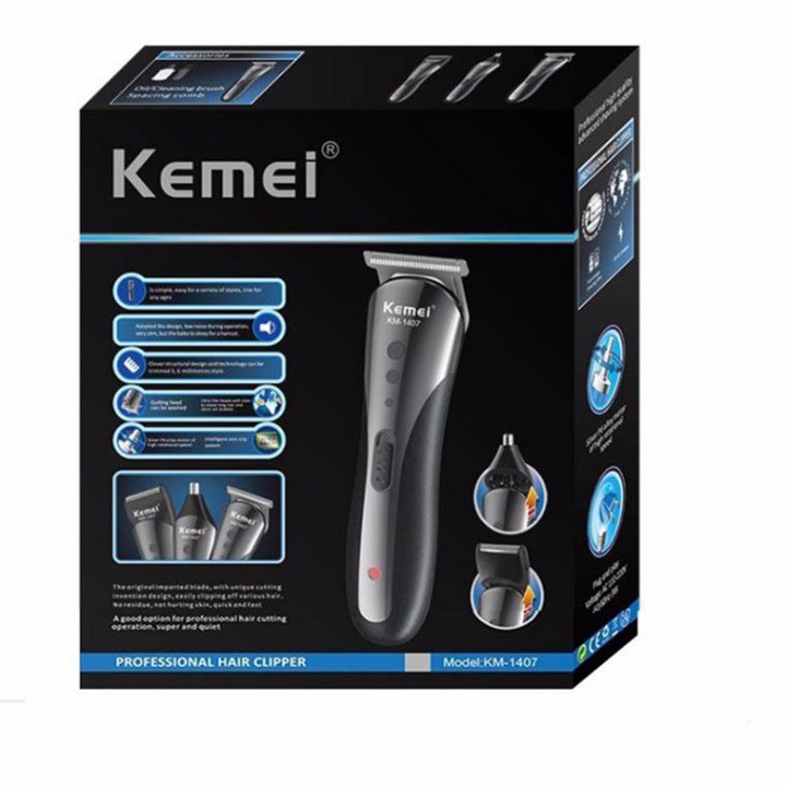 Sản phẩm Tông Đơ Cắt Tóc Kiêm Cạo Râu, Tỉa Lông Mũi 3In1Kemei 1407 Tặng 2 Kéo Cắt Tỉa + 2 Dụng Cụ Lấy Ráy Tai Có Đèn hiện đang được bán tại Shopee.