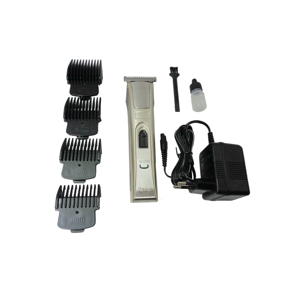 Tông đơ cắt tóc cao cấp Kemei KM5017 Tông đơ cắt tóc cao cấp Kemei KM5017 Thời gian sử dụng bền bỉ Bộ lưỡi dao được làm hoàn toàn từ thép không gỉ nên có thời gian sử dụng lâu dài. Sản phẩm có thiết kế đẹp, vận hành an toàn và tiện dụng Sản phẩm được thiết kế có tay cầm và nút điều khiển thuận tiện cho cả 2 tay. Sản phẩm dùng pin sạc rất tiện dụng, sạc 8 tiếng thì thời gian sử dụng liên tục lên đến 80 phút. Sản phẩm rất an toàn khi cắt tóc cho trẻ em, phù hợp với mọi gia đình. Máy có bộ phận giảm ồn, chạy êm nhẹ nhàng khi cắt tóc . Động cơ vận hành cực kỳ êm ái, không gây ra tiếng ồn khó chịu, có thể cắt tóc cho bé ngay cả khi bé đang ngủ. Vệ sinh dễ dàng Có thể vệ sinh máy bằng nước và cắt tóc ướt mà không phải lo máy hỏng. Sau khi rửa xong, bạn hãy lau khô và cất giữ trong hộp. Thông tin sản phẩm : Tên sản phẩm :Tông đơ cắt tóc cao cấp Kemei KM5017 Chức năng :Cắt tóc, cạo viền, tattoo Kích thước (dxrxc) :20x5x7 Kích thước hộp :20x25x13 Trọng lượng :500g Màu sắc : Vàng ánh bạc Chất liệu :Inox Công xuất :3W Xuất xứ : made in D.R.C Hãng thương hiệu: Kemei Giới hạn người dùng: Gia Đình Bảo hành : 3 tháng Phụ kiện sản phẩm1 hộp + 1 máy + 1 chổi + 1 lọ nước rửa + 1 xạc + 4 lược