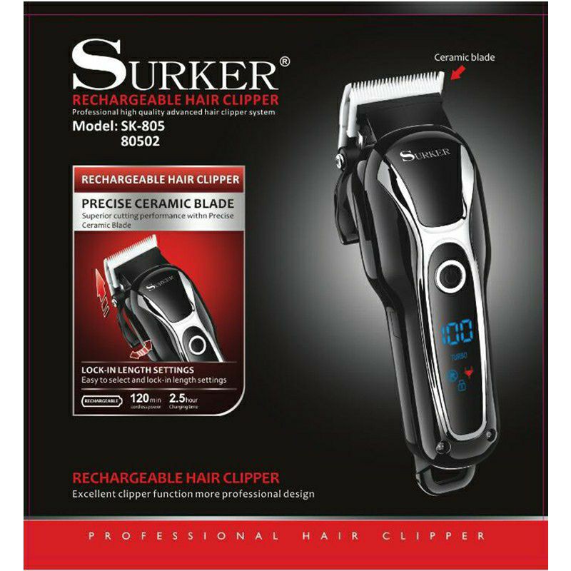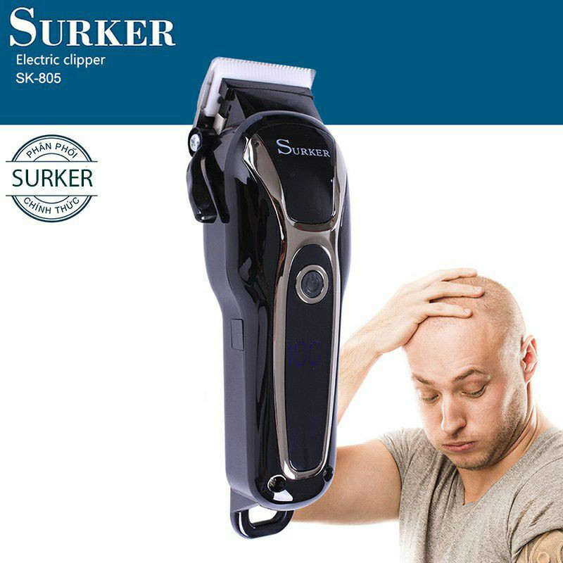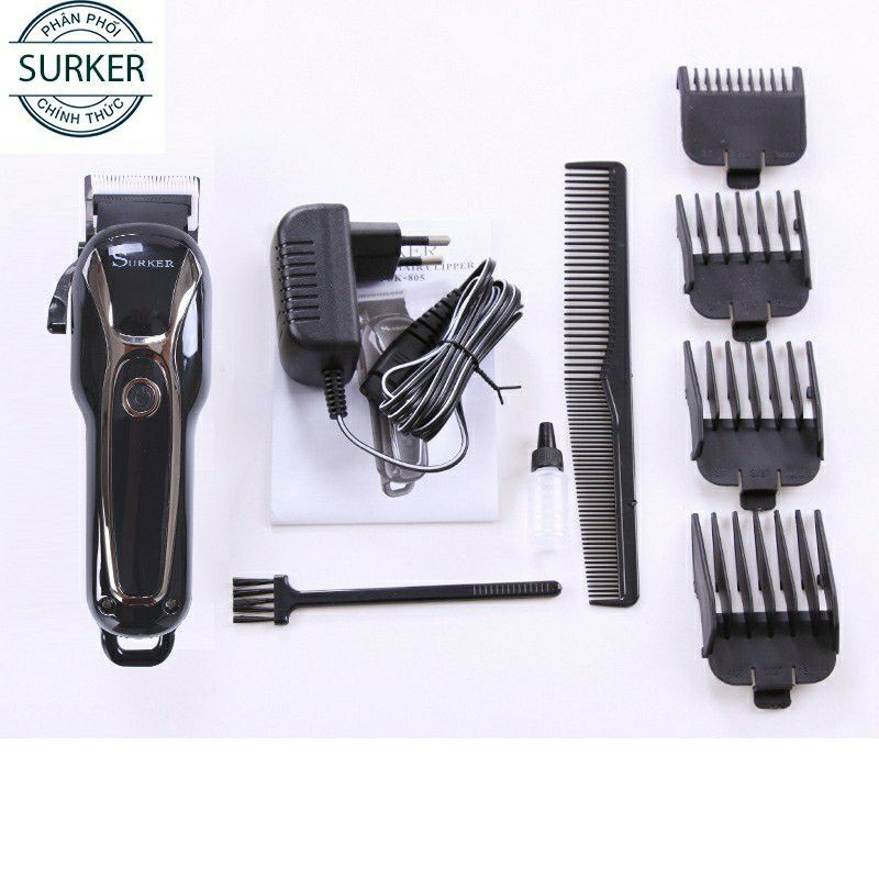 Dung lượng pin 2000ah – Có bản LED hiển thị dung lượng pin – Tông đơ sử dụng pin sạc ( không dây) – Thời gian sạc 2.5 giờ sử dụng 125 phút – Lưỡi nhựa. sứ cao cấp siêu bén – Có 2 cấp độ mạnh . và đặc biệt bấm nút nguồn và giử 4g máy sẽ tự động khóa 1.Đặc điểm sản phẩm – Chất liệu: Lưỡi sứ không gỉ – Màu sắc: Đen – Quà tặng kèm: 1 dây sạc, dầu tra máy, chổi vệ sinh Đặc điểm nổi bật Tông đơ cắt tóc Surker SK805 là một sản phẩm cắt tóc mới với kiểu dáng độc đáo và vô cùng tiện dụng cho người sử dụng. Sản phẩm này được sử dụng nhiều trong cách salon tóc, là công cụ hỗ trợ cần thiết cho các thợ làm tóc. Đặc điểm nổi bật của sản phẩm này có thể kể đến đầu tiên đó là chất liệu sứ của lưỡi cắt, với chất liệu này lưỡi cắt vô cùng sắc bén với độ bền cao lh 0986933290