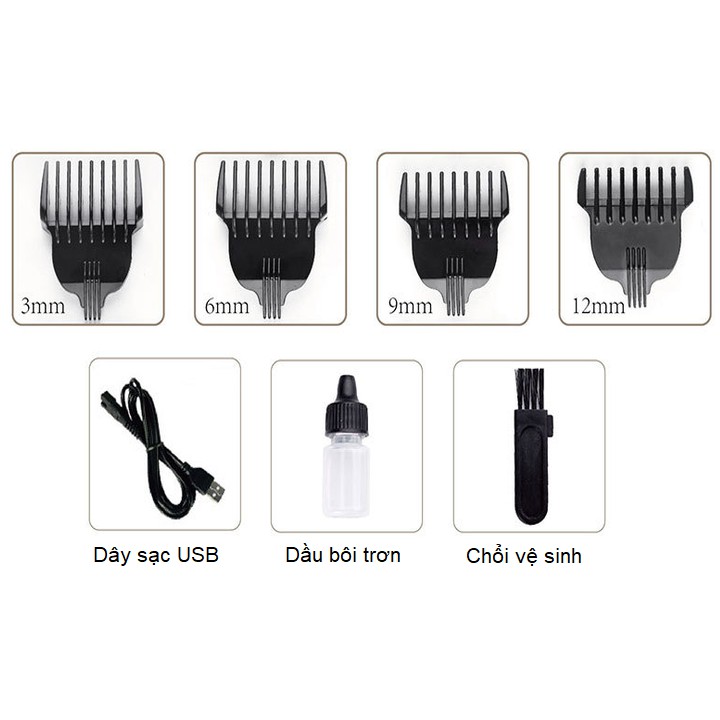Tông đơ cắt tóc cao cấp thương hiệu DSP TS-90127 - Thiết kế với màu đen sang trọng, chất liệu thép không gỉ cao cấp, cắt, tỉa an toàn, không làm trầy xước da bạn - Tông đơ có thể sạc lại, có đèn chỉ báo trạng thái sạc, đèn đỏ (đang sạc), đèn xanh (sạc đầy) - Máy có thiết kế nhỏ gọn; cấu tạo đơn giản, hết sức hiệu quả, thuận tiên sử dụng, dễ dàng ngay cả khi lần đầu tiên sử dụng - Được trang bị khay đựng tiện lợi, giúp bạn sắp xếp bộ tông đơ gọn gàng và ngăn nắp, không chiếm diện tích khi đặt trên bàn - Sản phẩm kèm theo lược căn độ dài tóc : 3mm, 6mm, 9mm và 12mm - Thích hợp sử dụng tạo kiểu tóc tại nhà hoặc ngoài salon làm tóc - Bộ sản phẩm bao gồm: 1 máy, 1 dầu bôi trơn lưỡi, 1 chổi vệ sinh máy, 1 dây sạc pin, 4 cữ lược căn chỉnh độ dài tóc cắt - Sản phẩm tặng kèm: 1 kéo cắt, 1 kéo tỉa, 1 áo choàng, 1 lược chải tóc bằng nhựa cứng, 1 túi đựng, 1 miếng bọt phủi tóc Thông số kỹ thuật sản phẩm - Hoạt động: Pin sạc, sử dụng không dây - Kiểu pin: Lithium-ion - Thời gian sử dụng: 90 phút - Thời gian sạc: 8 tiếng - Dung lượng pin: 2 x 600mAH - Tích hợp chip thông minh bảo vệ quá dòng, quá tải - Điện áp tự động: 100-240V 50/60Hz - Tiêu hao điện tối đa: 3W - Tiêu chuẩn chống nước: IPX4 - Kích thước sản phẩm: 15 x 3.5mm - Trọng lượng bao gồm phụ kiện: 1kg => Xin chân thành cảm ơn Quý khách đã ghé thăm Shop của chúng tôi, rất mong tiếp tục được phục vụ Quý khách! - Các hãng thương hiệu nổi tiếng - Hàng chính hãng 100% - Bảo hành chính hãng lên đến 24 tháng - Giá thành tốt nhất - Dịch vụ chuyên nghiệp => Slogan khẳng định của Công Ty "Uy Tín Tạo Thành Công"