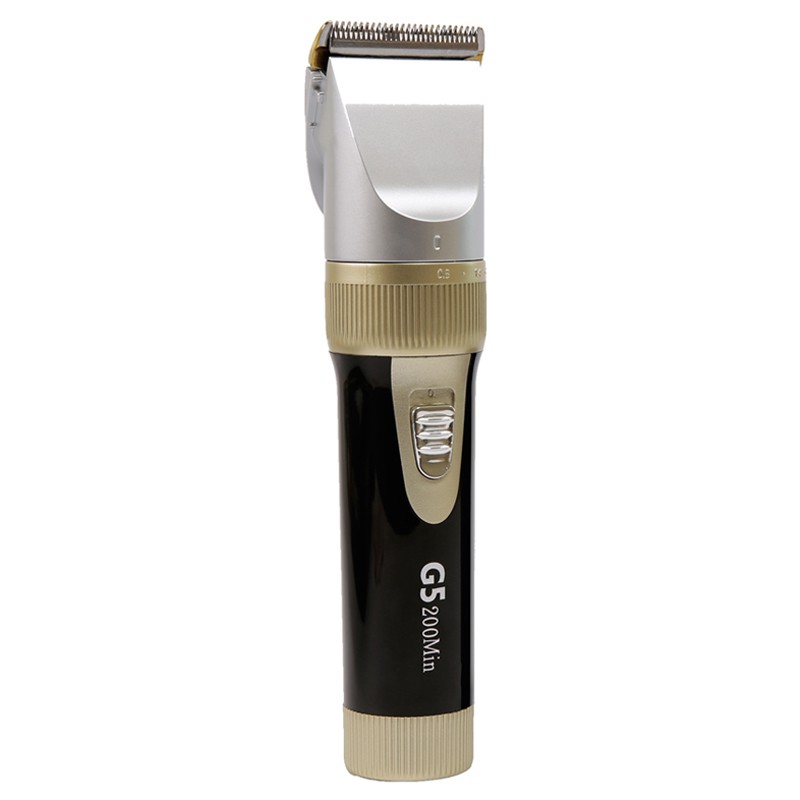 Tông đơ cắt tóc chuyên nghiệp G5 200Min là dòng tông đơ cắt tóc chuyên nghiệp tốt nhất hiện nay được thiết kế và sản xuất với chất liệu cao cấp nhất được kiểm tra kĩ lưỡng trước khi đến tay khách hàng Thông số kỹ thuật: Tông đơ cắt tóc G5 chạy 200 phút liên tục – Bộ sản phẩm bao gồm: 1 máy + 1 bộ sạc + 1 chổi vệ sinh + 1 lọ dầu + 4 cỡ (3,6,9,12 mm) + 2 pin + 1 hộp đựng – Điều chỉnh độ bám tóc từ 0.8 đến 2 mm – Công suất: 15W – Điện áp: 100- 240V – Tần số : 50/60 Hz – Thời gian sạc: 4-5 giờ – Kích thước máy: 17 x 4.5 x 4 cm Tông đơ cắt tóc G5 sau 5 giờ sạc thời gian sử dụng lên đến 200 phút Trước khi dùng bạn hãy nhỏ 1 giọt dầu bôi trơn vào đầu lưỡi dao nhé điều này sẽ giúp máy cắt được ngọt hơn và bảo vệ lưỡi dao rất tốt sau khi sử dụng hãy dùng chổi nhỏ vệ sinh tóc còn ở đầu lưỡi cắt nhé sản phẩm này sẽ khiến bạn hài lòng ngay từ lần sử dụng đầu tiên.