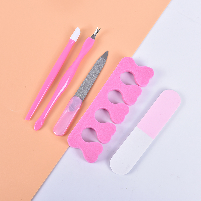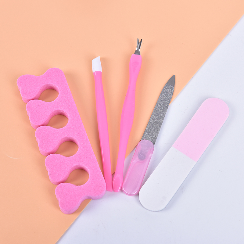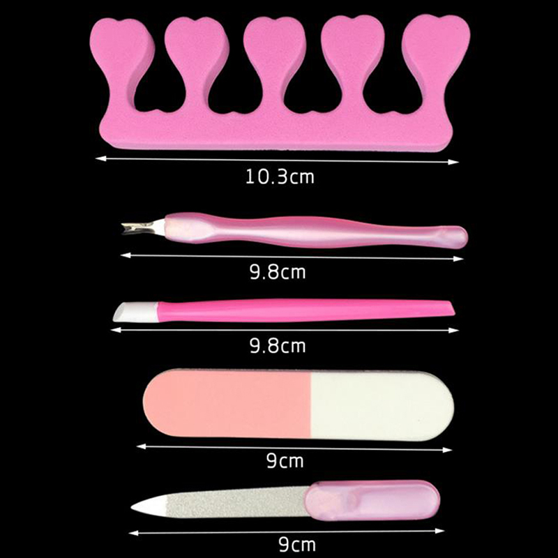 Welcome to our store! Feature: 100% brand new & quality Helpful pedicure, manicure care tool Suitable for professional and home use! Used to trim nails and polish the surface of nails, are essential tools for nails. Descrition: Size: As the picture shown Color: Random Color Quantity: 5Pcs/set Package Contents: 1 * Finger Separator 1 * Nail File 1 * Cuticle Fork 1 * Steel File 1 * Cuticle Pusher Stick Note -Please allow a little size error due to manual measurement. -Please be reminded that due to lighting effects and monitor's brightness/contrast settings etc, the color tone of the website's photo and the actual item could be slightly different.