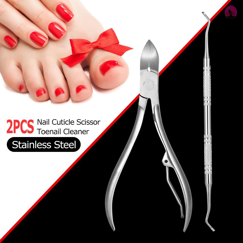 welcome to【pink you】2pcs Stainless Steel Nail Cuticle Scissor + Ingrowing Toenail Cleaner Nail Clippers Finger and Toe Nail Nipper Nail Manicure Pedicure Tool This nail tool can help you clean the filth hide inside your toenails. Its pointed top has special design which ensures a efficiently and thoroughly cleaning. To help you trim the dead skin near your nails, to prepare for your nail art painting. Why not have a look now? Features: [Made of stainless steel]: This product is made of stainless steel, not easy to rust. [Durable]: High qualiy, durable enough for your daily use. Double-ended and 34°radian design make it convenient to use. [Curved side]: The curved side is used for cleaning the filth hide inside your toenails, prevention of paronychia. [Sharp side]: The sharp side is used for trimming the dead skin near your nails or reshaping nail edges, cleaning dirty nail or paronychia nail. [Wide range of application]: Suitable for professional nail art salon or personal use. Specifications: Type: Nail Manicure Tool Material: Stainless Steel Color: Silver Quantity: 2pcs Nail clipper: Approx. 11.5 * 5.5 * 1.0cm / 4.5 * 2.2 * 0.4in (L * W * H) Toenail Cleaner: 16.5cm / 6.5in Item Weight: Approx. 76g / 2.6oz Total Size: Approx.16 * 7 * 1.0cm / 6.3 * 2.7 * 0.4in (L * W * H) Total Weight: Approx. 84.2g / 2.9oz Package List: 2 * Nail Tool