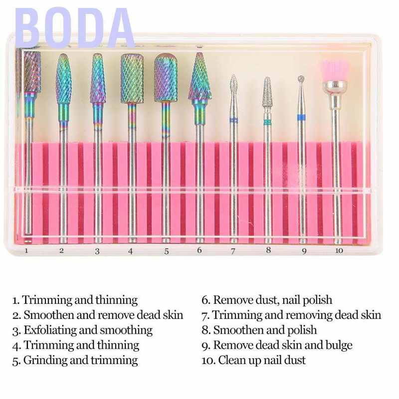 _________ ♤ Welcome bodas shop ♤ ____________ ✔ Existing stocks ✔ Good quality ✔ Most favorable prices ✈ Delivery within 1 day ☛ Free gift: focus shop access ❤ " Zan " 6 shop @ - @ wide merchandise: priority delivery ✉ If you want a free gift, please send me a screenshot of the store and the products you want to praise, and remember to leave a message on the order: " Free gift " If not, you will miss your mysterious gift ➷ Welcome wholesale retailers to diskuss with us long @ - @ term business wish you a happy shopping ✍ For any questions, please contact the merchant _______________ ❀ Product details ❀ ______________ Characteristics: - Grinding head function is complete, replaceable, can rotate before and after, has grinding, remove nail polish, remove dead skin, sculpt arc, etc. function, easy to use. - Meet different nail art requirements, suitable for various occasions. - The grinding head has good anticorrosive properties, can prevent nail polish remover etc. damage to the grinding head, and can be used for long term. The handle is made of tungsten steel and durable. - Universal 2.35mm handle diameter for most nail drillers on the market. 5. 10 grinding heads, individually packed, easy to carry and store. Norms: Conditions: 100% new Type of project: Nail grinding head set Model: E10-7 Material: Aluminum alloy Norms: 10/Diameter of handle set: Approximately 2.35 mm/0.1 inches Purpose: Remove dead skin, trim nails, smooth nails Application: used for manicure, removal of nail polish, etc., used with nail polish. Packing list: 10 x nail drill bit