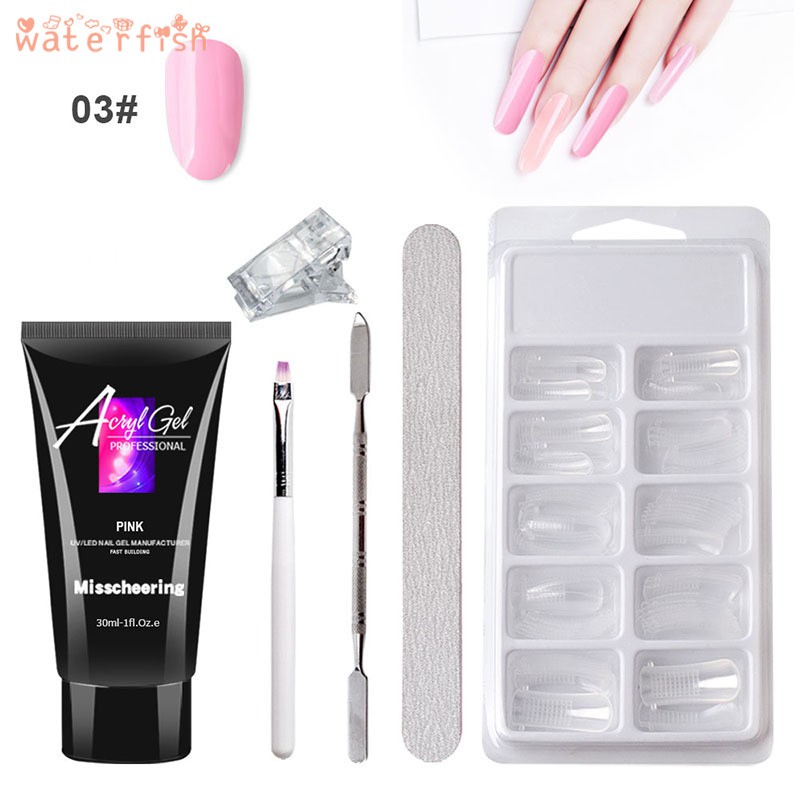 ____________✨♐✨ Welcome to the shop ✨♐✨____________ Decription: Features: 1. Advanced formula, not easy fall off and no harm to your nails. 2. The gel is easy to apply and quick to dry, crystal glossy color. 3. The transparent nail molds help to extend your nails, multiple sizes for your choice. 4. Suitable to apply on UV gel nails, acrylic nails and nature nails, etc. 5. Help strengthen your nails with a durable glossy coat. Perfect for both professional and personal use. Notice: 1. Actual color may be slightly different from the image due to different monitor and light effect. Please allow 1-3cm deviation due to manual measurement. Specification: Type: Nail extension gel set Size: as picture show Extension Gel Net content: 30ml Include: 1 x Clip 1 x nail file 1 x Paint brush 1 x Color mixing bar 1 x Extension nail gel 1 set x nail mold Included: 1 x Clip 1 x nail file 1 x Paint brush 1 x Color mixing bar 1 x Extension nail gel 1 set x nail mold