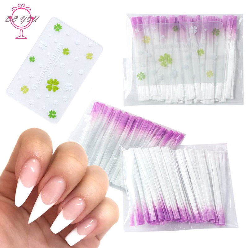 ________________ ♪♪♪ Shop introduction ♪♪♪ _____________________ Welcome to BEYOU, We insist on the lowest price to sell the best quality items. Follow us and get the discount first. Decription: Feature: Great Quality Fibers, Smooth Doesn't itch or pinch Great perfomance Easy application and adhesion. Naturality in the final result Specification: Material: Fibre Color: As the picture Size: about 5.5 cm Qty: 100pcs/Set How to do fibernails: Step 1: After preparation of naturally nail, apply base coat and fiberglass Step 2: make the sealing of fiber above and below with UV builder gel Step 3: Cure nails under UV/LED lamp for 1-2mins.After few seconds, apply pinching clips to maintain the curvature Step 4: Remove pinching clips from nail Step 5: Technical sanding, this step is very important, From here the nail is already in the naturally format; Step 6: Apply no wipe top coat which leaves the nail always shiny, and helps in the durability of the nail Included: 100 x Nails Extension Tips