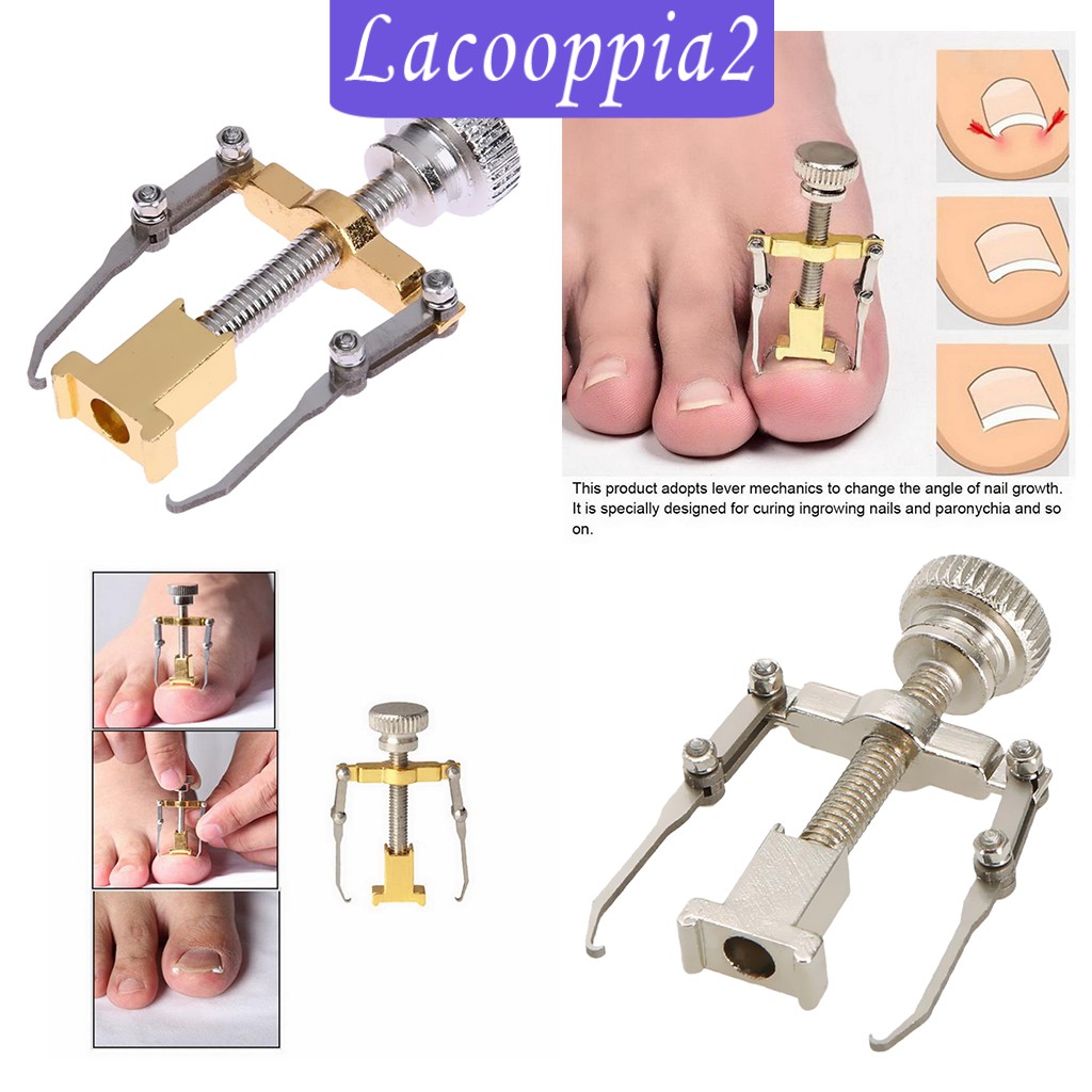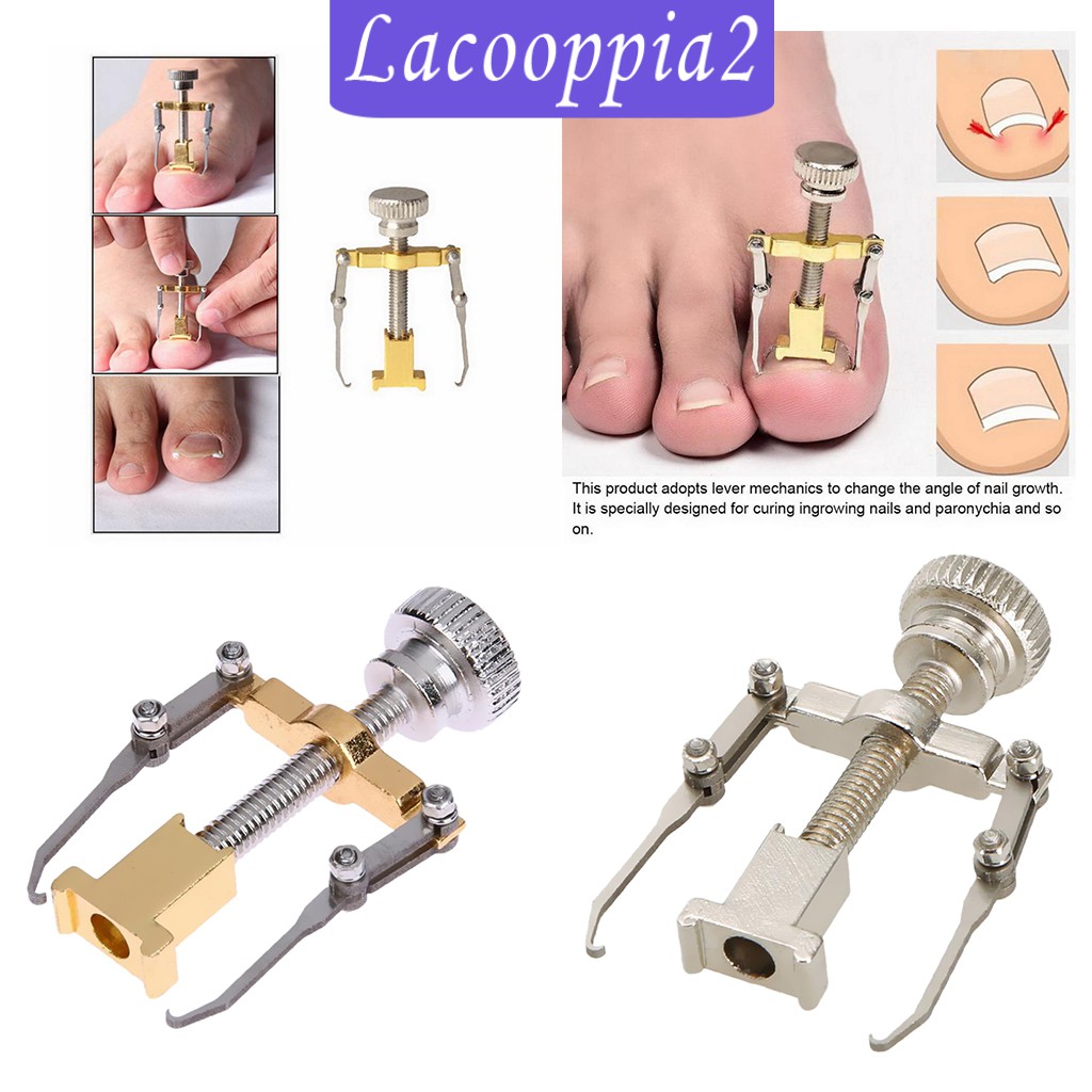 Description: This Ingrown Toenail Fixer features two prongs plus a screw mechanism. Suitable for severe ingrown toenails or patient volume design. First, you need to fix the prongs around the underside of your nails, then tighten the screw mechanism in place. Next, place your foot into some warm water to soak for 20 minutes while the device gets to work. Once the nail has softened, tighten the device some more, then dry the nail with a hairdryer. Finally, remove the prongs and enjoy your pain-free toenails. Specification: Material: Metal Size: Approx.44x24x12mm / 1.73x0.94x0.47inch Package Includes: 1 Piece Ingrown Toenail Corrector Note: For patients who has the too severe ingrown toenails, professional treatment is recommended,don't correct it by yourself.