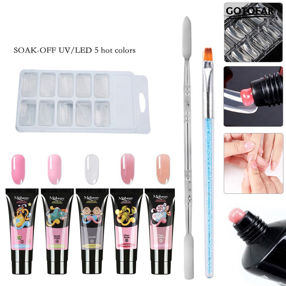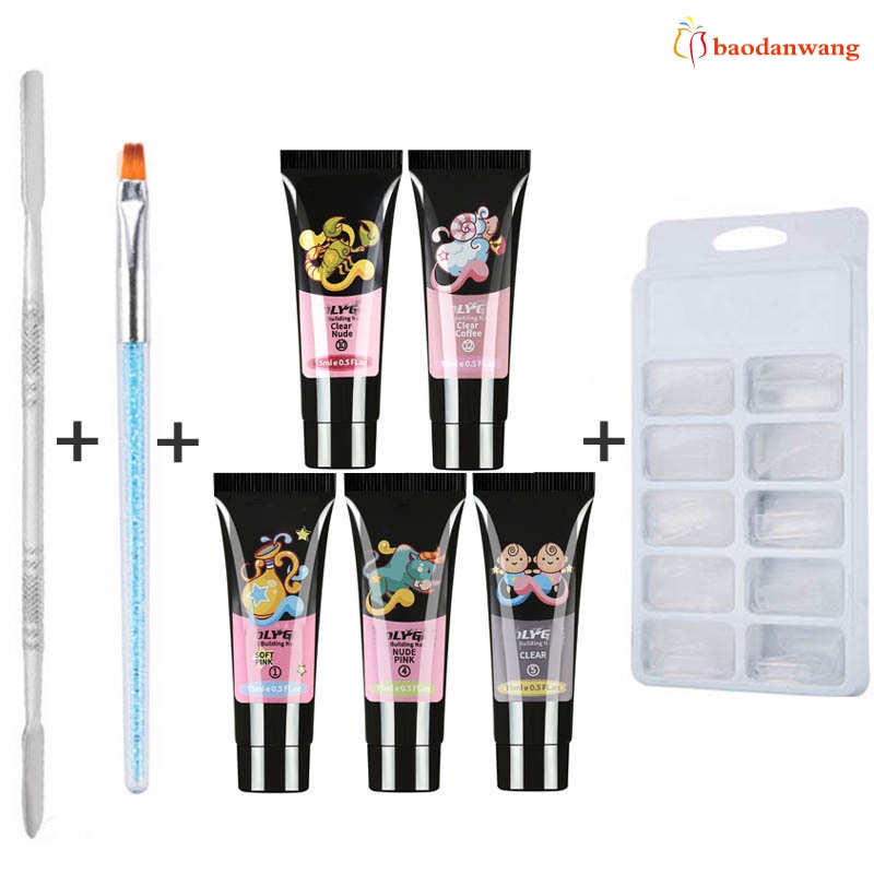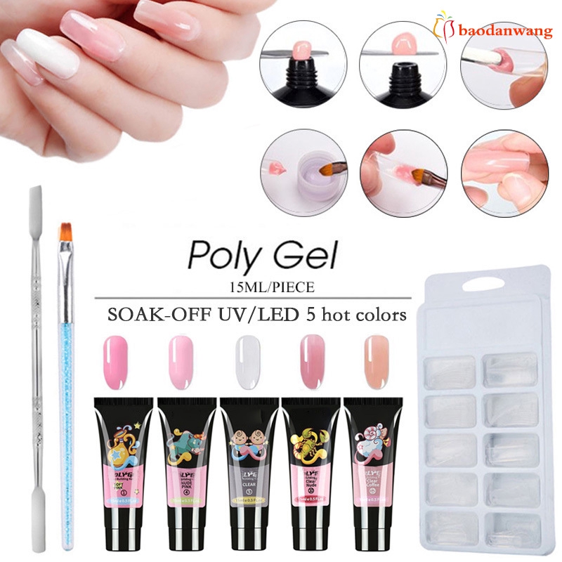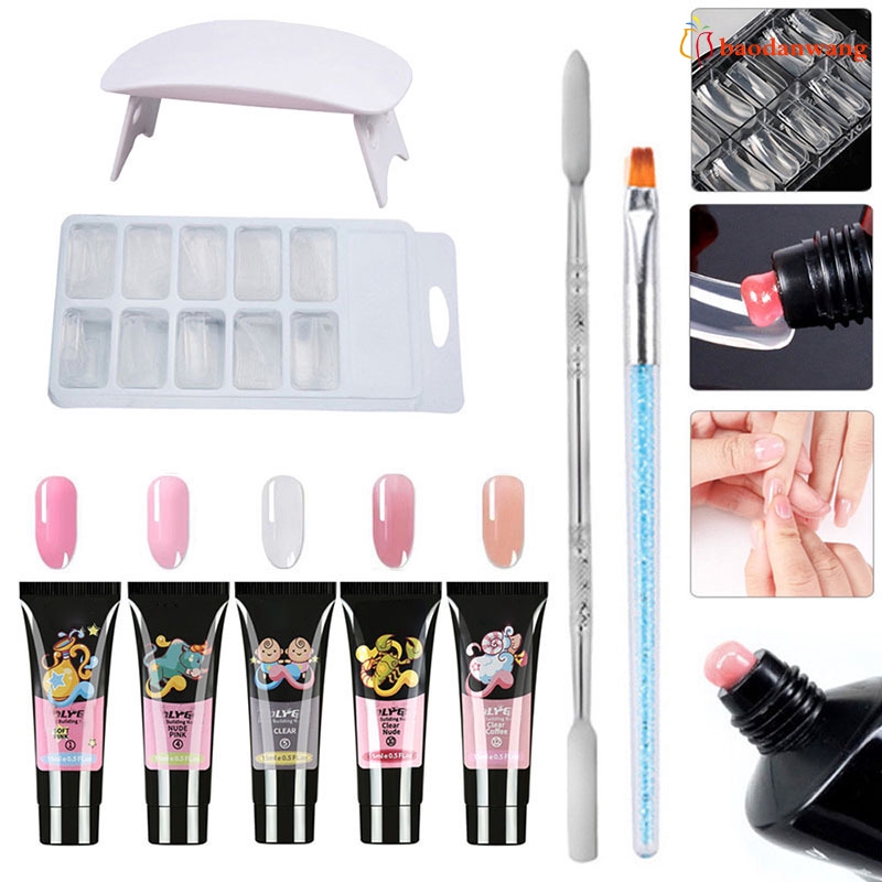 Decription: Features: The gel is glossy clear color, help to build nail molds, quick to dry with UV lamp. Rich nail polish colors allow you to adapt in any occasion,like casual affairs,night club,party,wedding etc Suitable to apply on UV gel nails, acrylic nails and nature nails, etc. Help strengthen your nails with a durable glossy coat. Perfect for both professional and p-ersonal use. Specification: Nail Gel Net: 15ml/pc Shelf life: 3 years Included: 1 set x Polish Nail Art Extension Kit