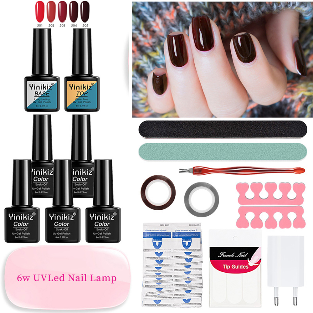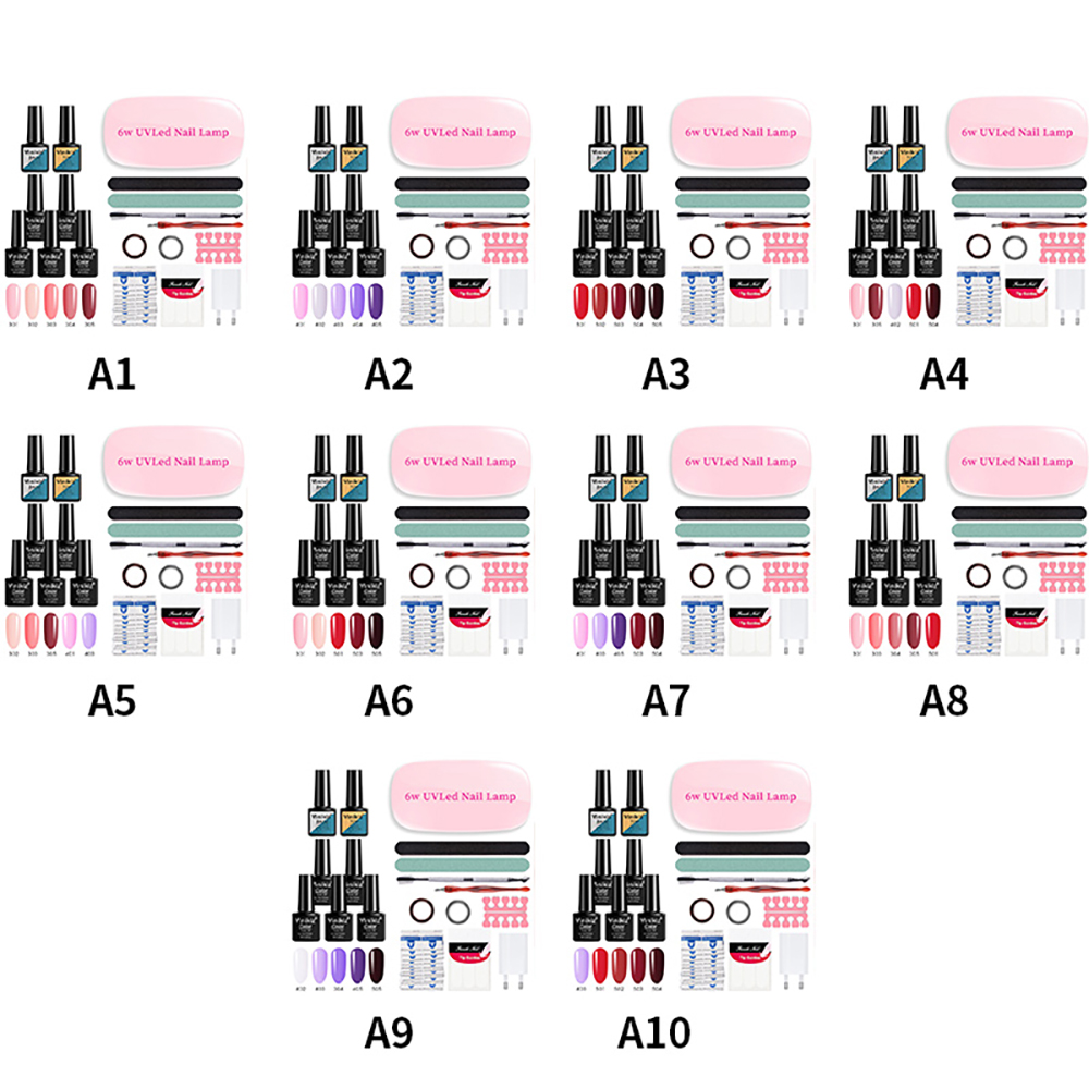 <div><p>Color: 10 Colors to Choose Type: Nail Gel Polish Net WT: 8ml Certification: MSDS and SGS Quantity: 1 Kit Package Included: Small steel push*1 Nail lamp*1 Nail glue*5 Nail makeup remover *10 Primer*1 Top coat*1 USB plug*1 Dead skin*1 Gold Line*1 Silver line*1 French stickers*1 Nail separator*2 Black file*1 Sponge grinding strip*1 Features: *Can be cured by LED & UV lamp. *Healthy and environmental friendly ingredient. *High quality and professional soak-off nail polish, but lowest price. *Long lasting for at least 2-3 weeks, beauty and super bright nails for you.</p></div>