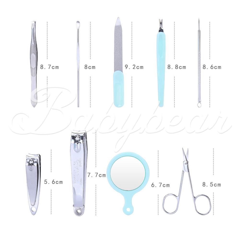 9 Pcs manicure pedicure kit comes with a beautiful and stylish case to protect the sharp tools, it is easily to close or open with a secure snap closure Perfect for travel or just to keep it all in one place for home use Manicuring, pedicuring, eyebrow shaping, anti-acne,exfoliating ETC, only with one set and all done Packed in a beautiful and portable case, including everything you need for your personal manicure, it is a surprise gift for both women and men These manicure pedicure sets are made of top high steel, pretty, sturdy and built to last Describe: Material: stainless steel ABS Product size: 11.5*10*4.5cm Notes: -The real color of the item may be slightly different from the pictures shown on website caused by many factors such as brightness of your monitor and light brightness. -Please allow slight deviation for the measurement data. -Thanks for your understanding Packing list: 1 Set x Nail Tool
