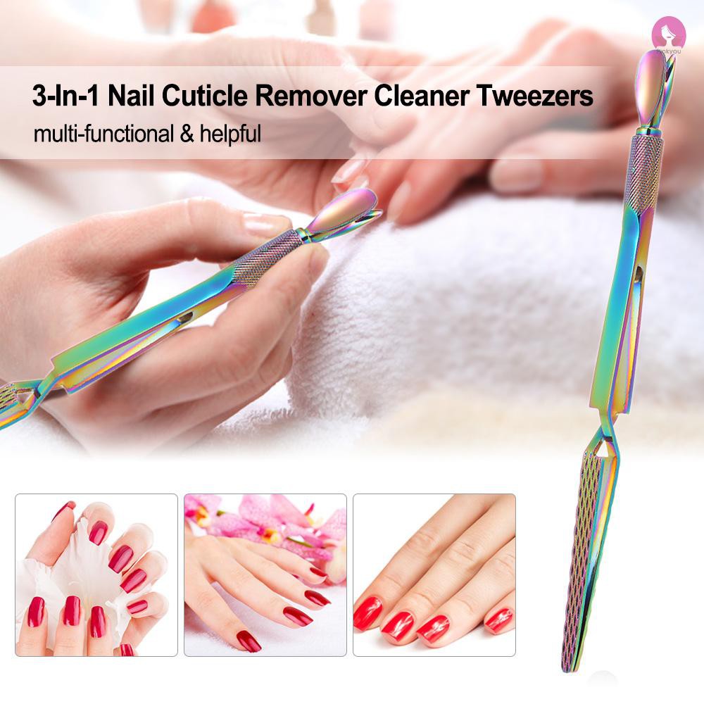 welcome to【pink you】3-In-1 Nail Cuticle Remover Cleaner Pusher Clamp Tweezers for Nail Extension Shaping Picking Rhinestones Tool Stainless Steel Description: Multi-functional nail tool for nail art DIY. Come and have a look! Features: 3-in-1 Nail tool, it can be used as C-curve tweezers, cuticle pusher or a nail cleaner. It can be used to remove nail polish, nail cuticle or shape nails. Completely made of stainless steel material, sturdy and durable. Very easy to handle, help you do well in you nail art design. Nice for nail extension and picking rhinestones. Specifications: Type: Nail Tool Material: Stainless Steel Color: Multi-color Item Size: Approx. 18 * 1cm / 7.06 * 0.39in Package Size: Approx. 18 * 1 * 1cm / 7.06 * 0.39 * 0.39in Package Weight: Approx. 32g / 1.13oz Package List: 1 * Nail Art Tweezers