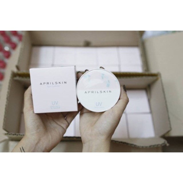 PHẤN NƯỚC MA THUẬT APRIL SKIN MAGIC SNOW CUSHION Phấn nước tác dụng 3 trong 1 vừa là phấn phủ, vừa là kem nền và vừa là kem che khuyết điểm cực tốt. Bạn sẽ không còn lo lắng về một làn da mụn hay nhiều khuyết điểm. ƯU ĐIỂM VƯỢT TRỘI "NỮ HOÀNG MARKUP APRIL SKIN" Khả năng che phủ hoàn hảo giúp che phủ cực tốt các khuyết điểm trên da. Duy trì lớp trang điểm trong thời gian dài mà không xảy ra hiện tượng xuống tông khiến khuôn mặt bị tối. Phấn tạo cảm giác da mướt, mượt mà không bị mốc hay khô da. Độ kiềm dầu tốt, phù hợp với cả bạn da dầu hay hỗn hợp dầu đến da thường. Kết cấu kem mềm mỏng mịn giúp tăng khả năng bám trên da và không bị bết dính. Lớp nền mỏng nhẹ, thích hợp với kiểu trang điểm trong suốt Chỉ số chống nắng cao SPF 50++ PA Phấn che phủ tốt nhưng vẫn cực kỳ thoáng da, cấp ẩm cực tốt, giúp da dầu hạn chế được sự tiết dầu và bã nhờn khó chịu.