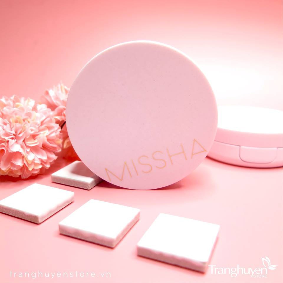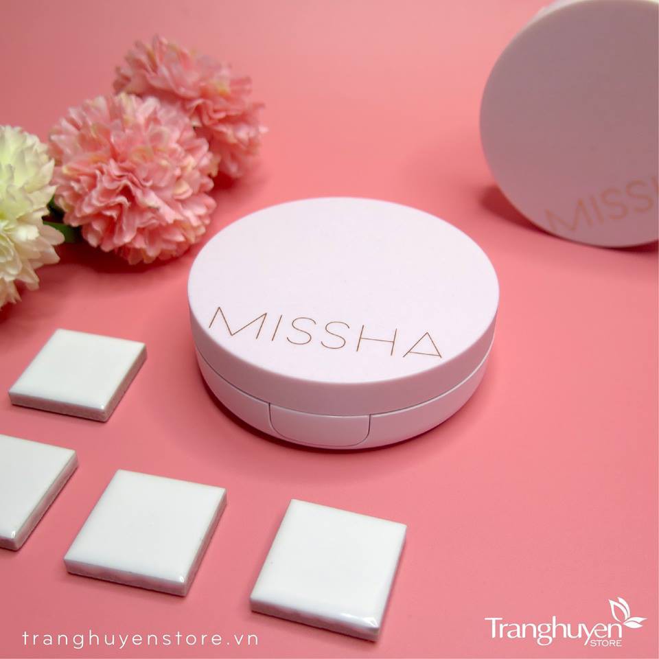 PHẤN NƯỚC MISSHA - VỎ HƯỜNG BẢN MỚI- VỚI LÕI PHẤN TRÀN KEM - #Nàng ơi hộp phấp vừa đẹp vừa xinh thế này ở đâu mà ra ⁉️⁉️⁉️ 🎲🎲Phấn nước nền #Missha_M_Magic_Cushion với khả năng che phủ hoàn hảo giúp che phủ tốt các khuyết điểm trên da. 💃 Duy trì lớp trang điểm trong thời gian dài mà không xảy ra hiện tượng xuống tông khiến khuôn mặt bị tối. 💋Phấn tạo cảm giác da #mướt_mượt mà không bị mốc hay khô da. 🔖Kết cấu #mềm_mỏng_mịn giúp tăng khả năng bám trên da và không bị bết dính. 🌺 Độ kiềm dầu tốt, phù hợp với cả bạn da dầu hay hỗn hợp dầu đến da thường. 🐞Thành phần chính: nước cây tre, chiết xuất cây baobap, nước cây phỉ nguyên chất giúp làm dịu da và cung cấp dưỡng chất cho da. 🍥Độ chống nắng cao SPF50+ PA+++, thích hợp dùng mùa hè. 🍦Giá quá tốt cho các bạn trải nghiệm một loại phấn nước che phủ tốt và thích hợp cho mọi loại da kể cả da dầu và hỗn hợp vì khả năng cấp nước làm mát giúp da dầu không bị đổ dầu, cực phù hợp cho mùa hè nóng bỏng. Thương hiệu : Missha _ Hàn Quốc