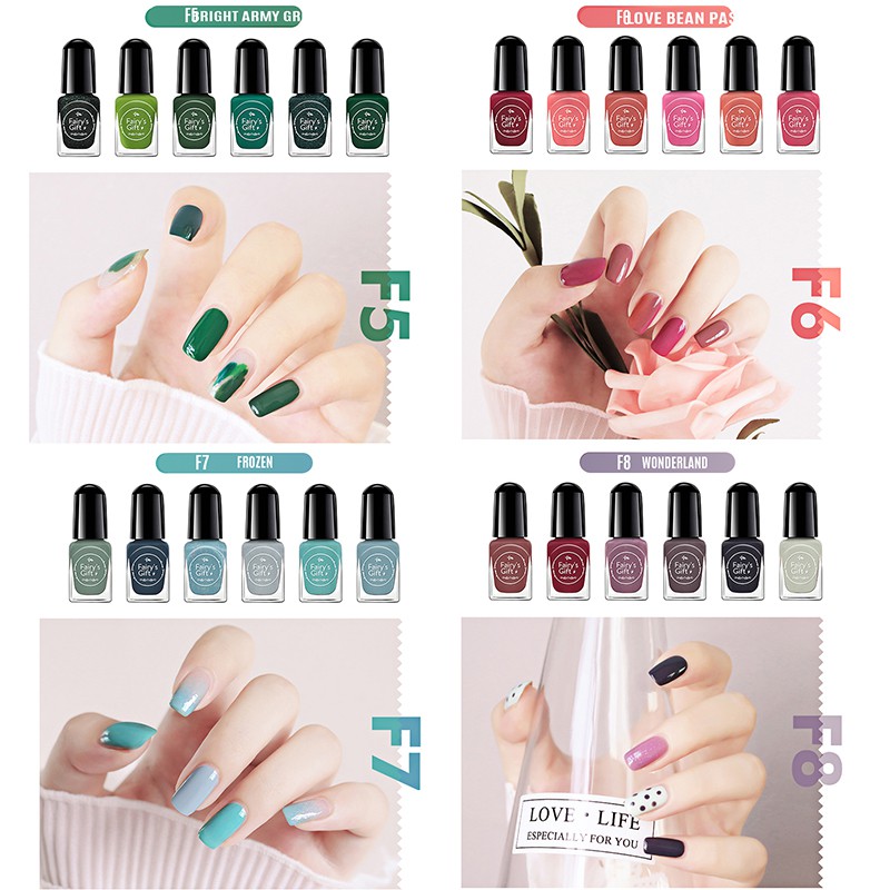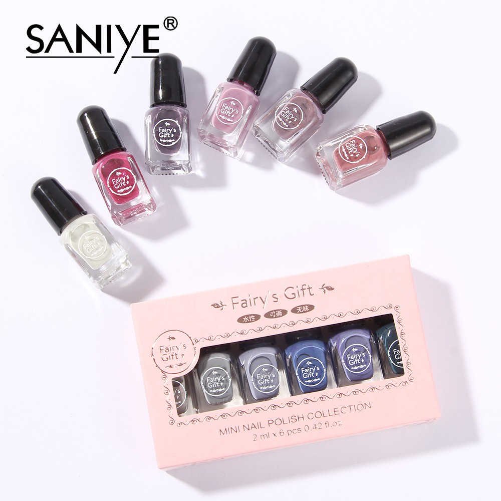 Thời gian giao hàng dự kiến cho sản phẩm này là từ 7-9 ngày SANIYE—— thương hiệu chất lượng tốt ! 💋 Chúng tôi là chủ sở hữu của thương hiệu SANIYE. 💋 Tất cả các sản phẩm được thiết kế và sản xuất bởi nhà máy của chúng tôi. 💋Tất cả các sản phẩm được bán ở đây đã được chúng tôi kiểm tra, đều là lựa chọn tốt cho bạn. 💋HÀNG CÓ SẴN 💋Cảm ơn bạn đã chọn mỹ phẩm SANIYE của chúng tôi Đặc điểm: ✅Màu sắc đẹp ✅Nhanh khô ✅Có thể trộn và phối ✅ Có thể cào ra / bóc ra sơn móng tay. Không cần tẩy ✅ Làm móng dễ dàng. Chỉ cần lột ✅ Không có mùi khó chịu, an toàn, không độc hại và thân thiện với môi trường hơn Hàng mới Tên sản phẩm: Bộ 6 lọ sơn móng tay Màu sắc: # F1 NỮ HOÀNG THANH LỊCH # F2 SANG CHẢNH # F3 HOA HỒNG QUYẾN RŨ # F4 XÁM NHẠT # F5 XANH LÁ SÁNG QUÂN ĐỘI # F6 MÀU HẠT ĐẬU TÌNH YÊU # F7 MÀU BĂNG # F8 TIÊN GIỚI # F9 NGỌT NGÀO # 10 NƯỚC ÉP CAM Dung tích: 12ml (2ml * 6) Ngày sản xuất: 2020. 06 Hạn sử dụng: 2 năm kể từ ngày sản xuất Xuất xứ: sản xuất tại Trung Quốc Thích hợp cho loại da: mọi loại da GÓI HÀNG BAO GỒM: 6 lọ sơn bóng móng tay Lưu ý: 1. Vui lòng cho phép sai số kích thước 1-2CM do sản phẩm được đo đạc bằng phương pháp thủ công. 2. Do điều kiện ánh sáng và chế độ cài đặt màn hình nên màu sắc thực tế của sản phẩm sẽ có đôi chút khác biệt với hình chụp. Hy vọng bạn thông cảm