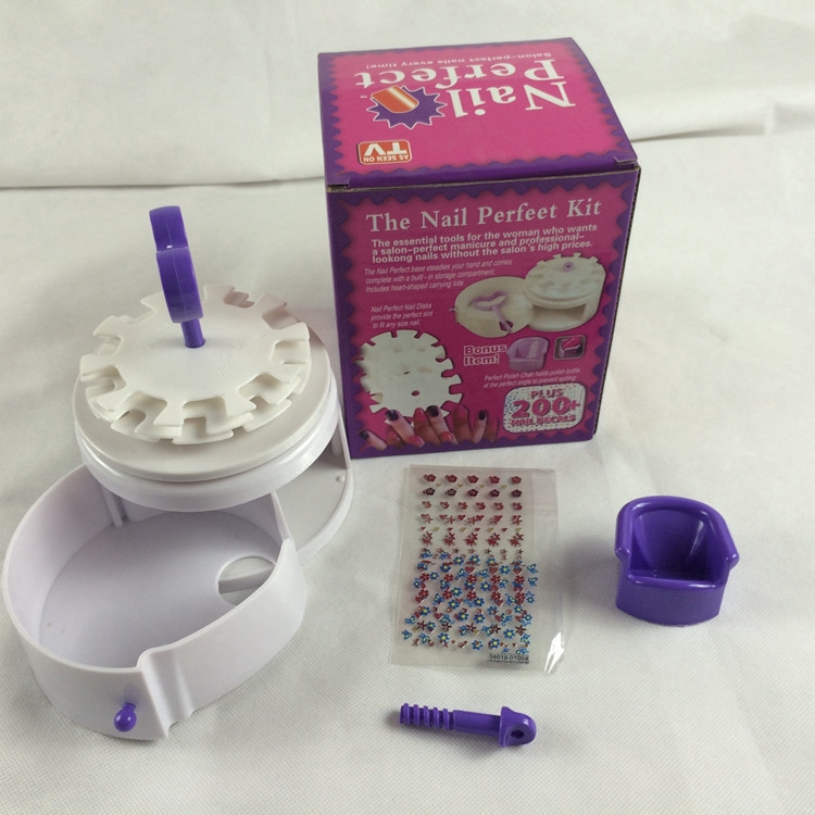 Size: App12.5x12.5x15.5cm Materials: Plastic Plus: 200pcs nail decals(Random Styles) With nail perfect is the solution for salon perfect beatiful nails everytime Simply slide each fingernail into the suggest size lot and apply the polish The slots will fit any size nail Extra polish ends... up to the disk and not your fingers! Nail perfect is so quick and easy to paint your nails, you could paint them with your eyes closed! Gives you a perfect base to stedy your hand so even complicated manicures like french manicures are made simple. Save a lot of money on expensive salon visits and get a perfect polishing every time.