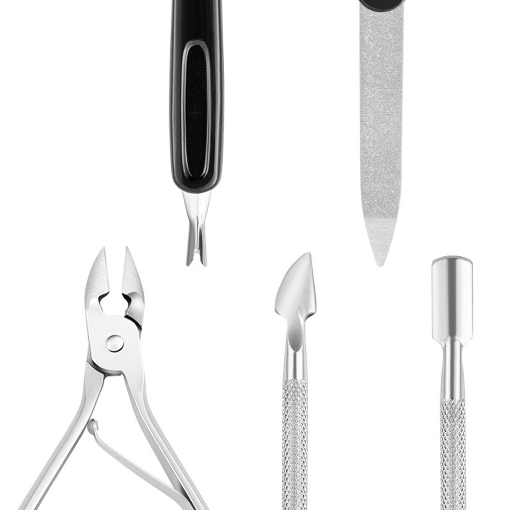 Specifications: Made of stainless steel material, strong, beautiful and durable. Cuticle clippers: designed for cutting thin edges. The blade scrapes off the skin residue that is difficult to remove on the nail, which is very suitable for removing glue when using acrylic nails. Suitable for professional salon use or home use, a useful pedicure, manicure care tools set. Type: Nail Clippers Set Material: Stainless Steel Features: Sharp, Nail Beauty, Manicure Tool Nail Clipper: 9.3cm x 6cm x 2cm/3.66" x 2.36" x 0.79" (Approx.) Dead Skin Fork: 8.9cm x 1cm x 1cm/3.50" x 0.39" x 0.39" (Approx.) Nail File: 9.2cm x 2cm x 1cm/3.62" x 0.79" x 0.39" (Approx.) Double Head Nail File: 9.1cm x 2cm x 1cm/3.58" x 0.79" x 0.39" (Approx.) Notes: Due to the light and screen setting difference, the items color may be slightly different from the pictures. Please allow slight dimension difference due to different manual measurement. Package Includes: 1 x Nail Clippers 1 x Dead Skin Fork 1 x Nail File 1 x Double Head Nail File