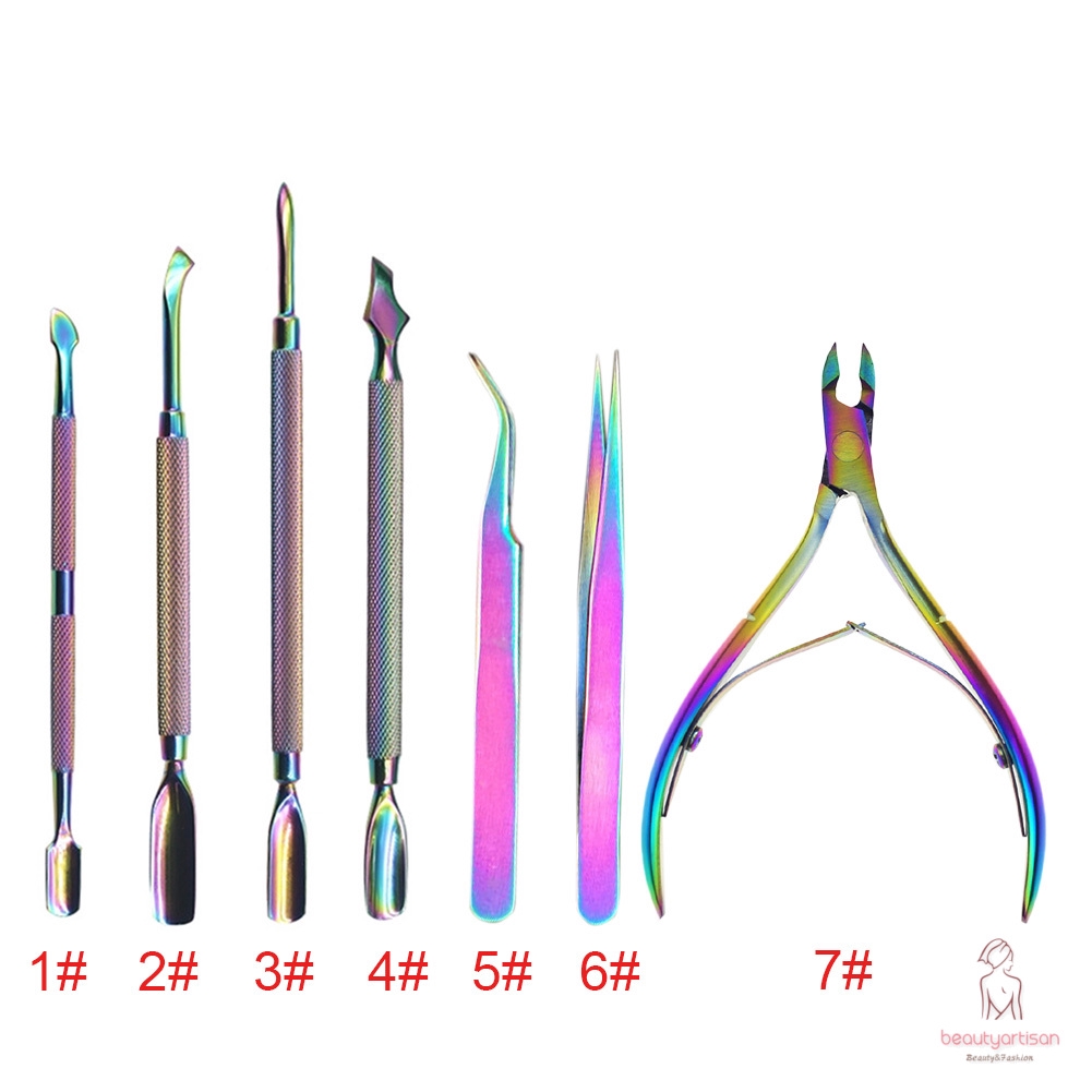 ✿Welcome to our store and we will provide the most satisfied service to you! Decription: Features: Type:Pedicure Tool Material:Metal Size:as picture show Style: 1-4:Nail Pusher 5-6:Tweezer 7:Nail Clippers Quantity:1 Pcs Description: 1. Made of high quality stainless steel, durable enough for your daily using. 2. Trim dead skin, cuticle and hangnail. 3. Sharp edge, can cut the toughest of nails with the minimum effort. 4. Perfect tool to remove dead skin, hangnails, make the fingers neat appearance. 5. Suitable for professional salon use or home use. Notice: Please be careful when using the product, especaily the sharp tip. Due to the different monitor and light effect,the actual color maybe a slight different from the picture color. Included: 1 x Pedicure Tool