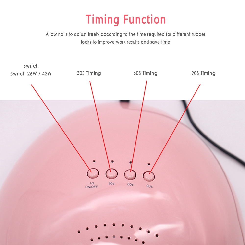 Description: 100% brand new and high quality. This is very convenient and practical for you. Suitable for professional or home use. Intelligent overheating protection: reduces the burning sensation and makes you comfortable during nail exposure. This product is specially designed for nails and can be used on the most dry gels to provide excellent drying effect not only for nails but also for toenails. use: 1. Turn on the machine. 2. When both hands reach into the machine, the infrared sensor will start automatically. 3. Automatic shutdown when leaving, the default maximum working time is 10s / 30s / 60s / 90s. 4. When the power is on, the indicator lights up. Specification: Applicable people: General Material: UV, stainless steel Product voltage: 100V / 240V Product power: 42W Total number of lamp beads: 24 Product color: as shown Specifications: Smart infrared sensor: can automatically work when hands inserted in and automatically light off when hands coming out Double Light Source, curing all gels: LED gels, UV gels,etc High bright LED,even light distribution,no dead zone and eye protection Light, compact,easy to carry . Dual light source, smart sensor Package Included: 1 * nail lamp + 1 * power plug + 1 * instruction Notes: Due to the difference between different monitors, the pictures may not reflect the actual color of the item. Compare the detail sizes with yours, please allow 1-3cm error, due to manual measurement. Please leaving a message before you give the bad feedback, if the products have some problems. Thanks for your understandings.