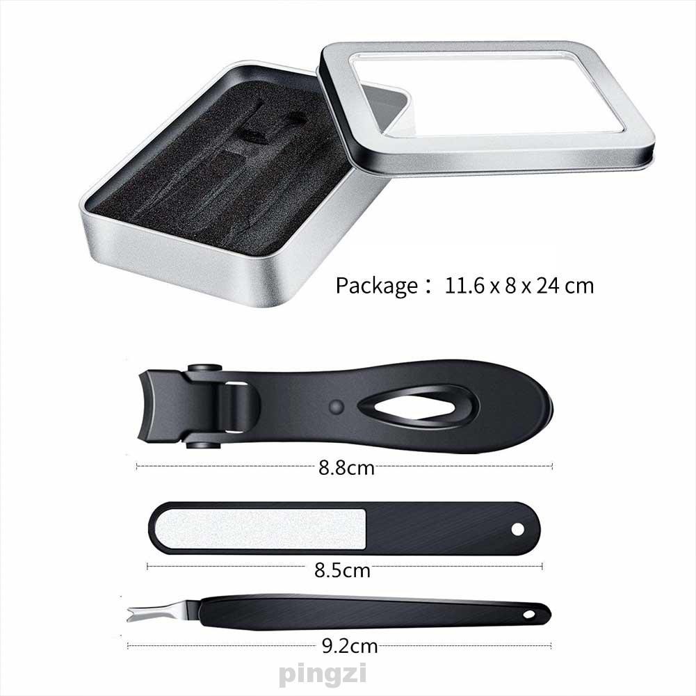 Features: Ultra Wide Jaw Opening: The thickness is up to 15mm. This is the maximum jaw width for top-down style nail clippers. Sharp Blades: The blade edges of the nail clipper are perfectly aligned against each other, with no gaps in between. Nails are sleek and smooth after clipping, with no more tearing or jagged nails. Durable Material: The nail clippers are made of stainless steel, rust resistant and high hardness, good wear resistance. Anti Slip Handle: The handle enhances extra strength when the thick nail is depressed. Professional design with good grip and anti-slip performance. Universal: Perfect for a variety nail types including men, women, seniors, the elderly. Specifications: Item Type: Nail Clipper Set Material: Stainless Steel Color: Black + Silver Quantity: 3Pcs/Set Size: (Length) Nail Clipper: About 8.8cm Nail File: About 8.5cm Dead Skin Remover: About 9.2cm Package Includes: 1Pc x Nail Clipper 1Pc x Nail File 1Pc x Dead Skin Remover 1Pc x Storage Case Notes: Transition: 1cm=10mm=0.39inch -Due to the different monitor and light effect, the actual color of the item might be slightly different from the color showed on the pictures. Thank you! -Please allow 1-3cm measuring deviation due to manual measurement.