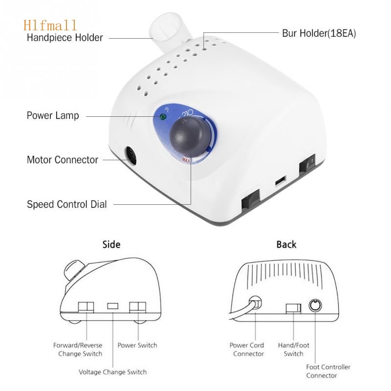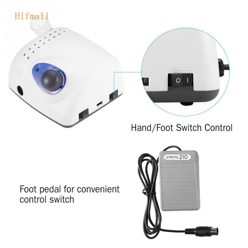 #Electric Nail Drill #Nail Art #Finger and Toe Nail Polishing #Manicure and Pedicure #Nail Drill Machine #Grinding Drill #Curving Drill Description: This product is perfectly suitable for nail polishing and it also works on many grinding stuff: tooth, jades, moulds,diamonds polishing and jade, art work carving, etc. It is suitable for professional use and home use. Even as a beginner, you can know how to operate it and easily get you grinding stuff done. Features: Speed Control: Adjustable speed, control from the min to max. Easy to use dialing speed control. Hand/Foot Switch Control: Foot pedal for convenient control switch. Suitable for All Kind of Drill Heads: This product can be perfectly used for tooth, jades, moulds,diamonds polishing. Low Noise and No Vibration: With stable speed, this product is extremely quite and smooth. Forward & Reverse: With a forward to reverse switch, so you can use it forward or reverse. Bur Holder: With bur holder design, it is convenient to stick the grinding burs into them. Easy to Use: The drill heads can be easily put on and off. The speed is easy to control.It's suitable for professional salon use and DIY at home. Specifications: Input Voltage: 110V Power: 65W Rotation: 35000rpm Main Body Weight: Approx. 700g Package Size: Approx. 24.5 x 20 x 10cm Plug Type: US Package List: 1 x Main Machine 1 x Micro Motor Handpiece 1 x Foot Pedal 1 x Handle Holder 1 x English Manual