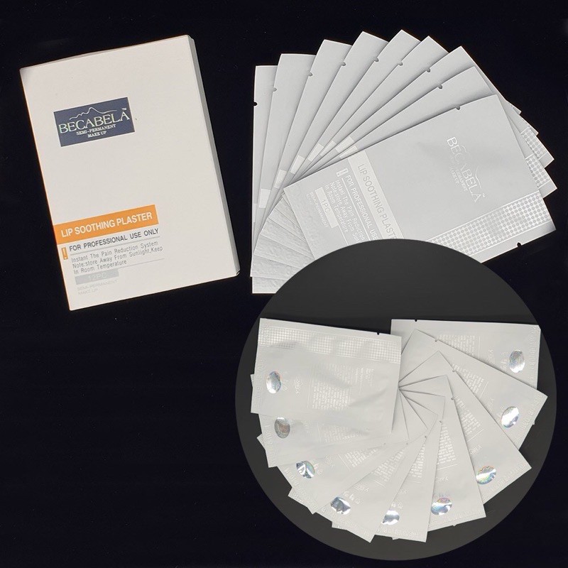 * Công dụng của miếng ủ môi Đức Becabela: - Dùng để ủ t.ê môi trước khi phun môi cho khách hàng, giúp hàng dễ chịu trong suốt quá trình phun xăm kéo dài. - Sử dụng thuận tiện, đơn giản. * Cách dùng t.ê miếng ủ môi Becabela: - Vệ sinh môi và tẩy sạch tế bào chết trên môi trước khi sử dụng. - Cắt gói t.ê, gắp miếng tê đắp lên môi khách hàng và dùng nilong bịt kín lại. - Thời gian ủ khoảng 15 - 25 phút. Trong quá trình ủ có thể xước t.ê 1 - 2 lần để tê nhanh ngấm hơn. * Quy cách sản phẩm: - 1 miếng ủ/gói - 12 gói/hộp