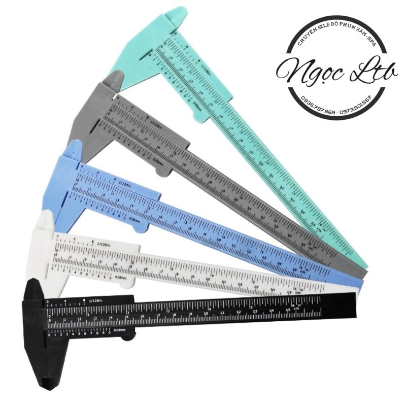 👉Thước kẹp nhựa được sản xuất bằng nhựa cứng với 3 màu trắng, xanh và đen cho thợ phun xăm thoải mái lựa chọn. 👉Thước đo được thiết kế giống như 1 chiếc kẹp giúp đo chính xác nhất độ dài lông mày. 👉Đây là sản phẩm cực kỳ cần thiết đối với những người mới học phun xăm.