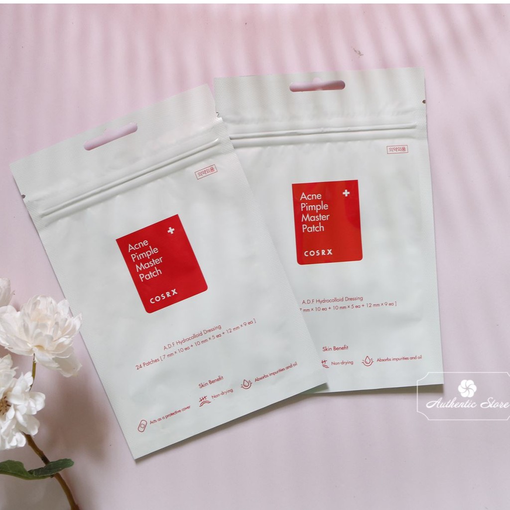 Miếng dán mụn Cosrx Acne Pimple Master Patch Xuất xứ: Hàn Quốc Hãng: Cosrx Công dụng: Hỗ trợ mụn, giúp mụn giảm sưng và hút mủ mụn bên trong Cosrx từ lâu đã quá nổi tiếng với những sản phẩm chuyên mụn, và không có gì lạ khi hãng tung ra miếng dán mụn siêu mỏng này THIẾT KẾ Bao bì đơn giản, hãng vô cùng tâm lí khi thiết kế các miếng dán mụn có nhiều size khác nhau để phù hợp với từng kích cỡ mụn nhất định. Một gói gồm 24 miếng với 3 size khác nhau Miếng dán cực kì mỏng và trong đến độ tệp luôn vào màu da và phải đứng gần nhìn kĩ lắm mới có thể phát hiện được THÀNH PHẦN Thành phần nổi bật: Salix Alba (vỏ liễu trắng), Panthenol (vitamin B5), Allantoin, Arginine, Sodium Hyaluronate. CÔNG DỤNG Miếng dán mụn Cosrx Acne Pimple Master Patch (*) Ngăn không cho mụn tiếp xúc với môi trường bụi bẩn bên ngoài khiến mụn càng trở nên tồi tệ, sưng to hơn bởi vì tiếp xúc với môi trường bụi bẩn bên ngoài chính là nguyên do khiến mụn bị vi khuẩn xâm nhập nhiều hơn (*) Salicylic Acid giúp hút nhân mụn và mủ mụn sạch sẽ, không cần nặn bởi nếu nặn mụn thường hay để lại thâm mụn khó chữa (*) Giúp che màu tẩy đỏ khó coi của vết mụn HƯỚNG DẪN SỬ DỤNG Buổi sáng: sau khi rửa mặt sạch sẽ, dán lên nốt mụn. Dùng trước khi sử dụng kem chống nắng để giữ mụn sạch không bị tiếp xúc với bất cứ tác nhân nào Buổi tối: có thể sử dụng qua đêm để miếng dán này hút nhân mụn ra và giúp mụn giảm sưng hơn