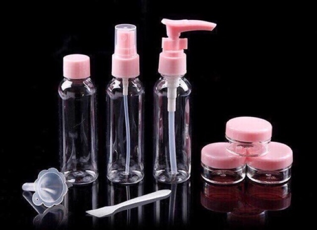 ❌❌❌Bộ Chiết Mỹ Phẩm Du Lịch ❌❌❌ ______________________________ - Bộ chiết mỹ phẩm du lịch 7 món tiện dụng cho những người thường xuyên đi du lịch, công tác. - Đầy đủ những dụng cụ chiết mỹ phẩm: dầu gội, sữa tắm, kem dưỡng da, dung dịch dưỡng tóc… Ngoài ra còn có lược, gương, khăn mặt, que trộn. - Chất liệu nhựa cao cấp, bền, đẹp. + 02 bình xịt nhỏ dùng chiết kem dưỡng da, sữa rửa mặt, các loại mỹ phẩm khác… + 01 muỗng san mỹ phẩm + 1 phễu gạn chất lỏng + 01 bình chiết + 1 bình dạng xịt to: dùng chiết dầu gội đầu, sữa tắm, nước dưỡng tóc.