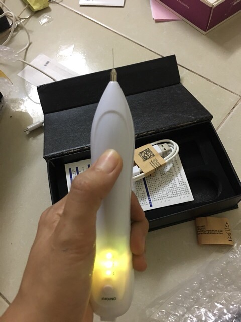tàn nhang mini Máy mới MoLe Pen hàng Mới giá Không Đổi - Tên sản phẩm: máy xóa nám tàn nhang mini - Công nghệ: Electric ion (Germany - Đức) - Kích thước máy: 18 x 3,8 x 2,5cm - Nguồn điện áp đầu vào: 110V - 240V - Nguồn điện ra: 5V - Tần số quét: 50-60Hz - Trọng lượng: 100g (không pin) - Phụ kiện kèm: 5 kim quét nám tàn nhang nhỏ, 1 đầu kim lớn dùng đốt nốt ruồi mụn thịt, 1 dây cắm sạc USb ( Không Kèm cục sạc ) Máy xóa nám tàn nhang hay máy quét nám đốt mụn thịt là sản phẩm dùng cho phần điều trị tái tạo da nhỏ gọn nhất hiện nay nhưng àm việc cực kỳ hiệu quả có thể mang theo bất kỳ nơi nào chăm sóc da khách hàng. Máy xóa nám tàn nhang đốt nốt ruồi mụn thịt mini có thể tiêu diệt ngay các đốm sắc tố da không bình thường mà không gây chảy máu, có thể mang theo và hoạt động khá dễ dàng. Máy đốt xóa nám mụn thịt nối ruồi này sử dụng chức năng đốt điện sinh ion cacbonat điện ngay lập tức quét nám, tàn nhang, đốm tuổi, nốt ruồi phẳng, mụn thịt,.. một cách nhanh chóng mà không gây chảy máu tổn hại mô biểu bì sâu hoặc dây thần kinh ngoại biên. Nó có tác dụng an toàn hiệu quả trong điều trị thẩm mỹ. Công dụng máy xóa nám tàn nhang nốt ruồi mini Máy quét xóa nám tàn nhang mini cầm tay này sử dụng công nghệ thế hệ mới plasma vi điện với nhiệt độ thầm và tần số cao, sử dụng sạc trực tiếp bằng cổng USB. Máy xóa tàn nhang quét nám mini cầm tay sử dụng 2 đầu kim riêng biệt tùy từng mục đích sử dụng xóa nám tàn nhang hay đốt mụn thịt hay nốt ruồi. Hơn nữa, máy quét nám xóa tàn nhang mini này có 3 chế độ đốt cường độ từ thấy đến cao. Trong đó cường độ thấp dùng để xóa nám quét tàn nhang, cường độ cao dùng để đốt mụn thịt, đốt nốt ruồi. Cũng tùy theo từng loại da mặt mỏng hay dày mà mình có thể điều chỉnh số 1 hay số 2. Xin lưu ý trước khi sử dụng máy xóa nám tàng nhanh mini cầm tay, nên ủ kem tê ở nồng độ % thích hợp giúp tránh gây đau đớn cho người điều trị. Để tránh làm sẹo trên vùng da vừa điều trị xong, nên sử dụng chai serum tế bào gốc tảo xoắn Axit Hyaluronate + (HA+) để mau chống làm lành vết thương và tái tạo tế bào biểu bì collagen, đồng thời sử dụng thêm mỹ phẩm làm mềm và giữ ẩm thêm bằng chai Gel Amino Axit (Nhật Bản) tạo độ mịn, trắng, bóng và mau chóng làm đều màu da cho bạn