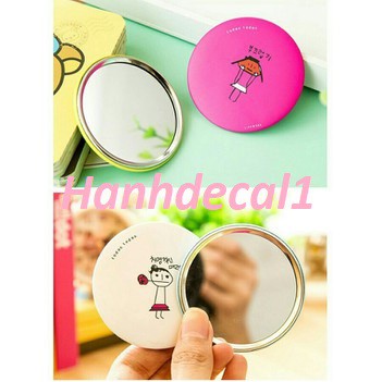 Gương Mini Dễ Thương Hàn Quốc - Bạn đồng hành với phái đẹp.Mua một bộ đồ trang điểm cũng giống như mua những bộ quần áo tuyệt vời, bạn cần phải tìm màu hoàn hảo phù hợp với màu da của bạn. Phái đẹp không chỉ đầu tư tiền của họ vào việc mua sắm quần áo mới, mà còn vào các sản phẩm làm đẹp để bản thân trở nên đẹp hơn. Ai lại không muốn trở nên thu hút, nổi bật với những người xung quanh? Không ai muốn xấu xí, mọi người đều muốn mình trông thật xinh đẹp. Phái đẹp cũng dành thời gian của họ chỉ để làm cho bản thân tươi trẻ hơn, và gây ấn tượng với những người xung quanh họ. Gương mini dễ thương Hàn Quốc là gương cầm tay cực kì siêu kute, thích hợp cho mọi bạn nữ để làm đẹp - Có nhiều hình cực kì dễ thương và ngộ nghĩnh tạo cảm giác vui tươi hơn - Nhỏ gọn có thể bỏ túi dễ dàng, thật là tiện lợi đúng không các bạn - Đường kính: 7cm - Trọng lượng: 17gr Lưu ý: Shop giao hàng ngẫu nhiên các mẫu.
