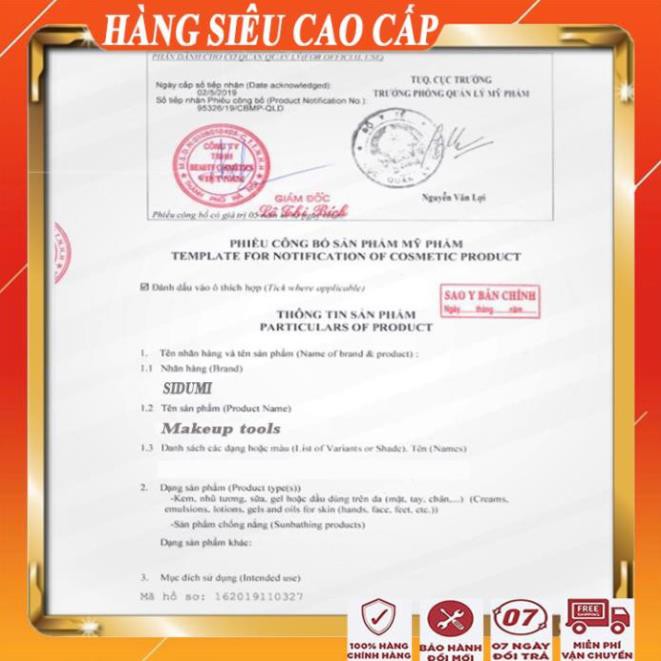 ✅Chuỗi cửa hàng mỹ phẩm lớn nhất miền Bắc. ✅Uy tín đã được đảm bảo qua hàng vạn đơn hàng trên khắp cả nước. ✅Cam kết hàng chính hãng loại 1 (Đền bù 200% nếu phát hiện hàng giả, hàng nhái). - Bảo hành 12 tháng - Lỗi 1 đổi 1 (Freeship đổi trả toàn quốc) ✅Tuyển sỉ và CTV toàn quốc, chiết khấu cực cao. Hàng luôn có sẵn đầy kho, gọi là ship ngay! ✅Giao hàng tận nơi, nhận và xem hàng, ưng ý thì mới thanh toán. Nhanh chóng, uy tín, chất lượng. ✅Cam kết sản phẩm giống như hình ảnh và mô tả. ✅Hoàn tiền 100% nếu khách hàng không hài lòng về sản phẩm. ✅Địa chỉ chính: Cơ sở 1: A26TT11, KDT văn quán, Hà đông, Hà nội (DT: 0387.80.80.80). Cơ sở 2: Số 74, Đường bạch đằng, Hải châu, Đà nẵng (DT: 0332.929.818). Cơ sở 3:Tầng 3 tòa nhà Landmark 81, KDT Vinhomes Central Park, Quận Bình Thạnh, TP.HCM (DT:0931.350.503). ***THÔNG TIN SẢN PHẨM*** Thương hiệu: Sidumi Xuất xứ: Hàn Quốc Mã sản phẩm: SDM CS18.1 Quy cách đóng gói: 1 Cây/túi Số giấy phép lưu hành của bộ y tế: 25569/17/CBMP-QLD Sản phẩm được nhập khẩu và phân phối bởi: Công Ty TNHH Trulive Việt Nam. ======ĐẶC ĐIỂM NỔI BẬT====== * Cọ được thiết kế với những sợi lông thật mềm và mịn giúp thoa son đều và mỏng theo ý muốn của bạn. * Đầu chổi nhỏ, sợi lông chổi mềm mại giúp kẻ viền môi sắc nét. Tạo độ loang tự nhiên và giúp son môi lên đều, bám màu lâu hơn. * Với thiết kế hiện đại nhất của dòng chổi môi. Cọ có nắp đậy có khả năng thu gọn giúp bạn bảo quản chổi thật dễ dàng và chuyên nghiệp. * Có thể dùng để đánh son môi, đánh sống mũi, mắt, vv... * Thân cọ được thiết kế dành riêng cho người châu á nên bạn có thể thao tác dễ dàng theo ý muốn, kể cả những ai ít dùng cọ. * Mặt ngoài cây cọ được mã 1 lớp hợp kim cao cấp làm cây cọ trở nên sang chảnh, giúp bạn nổi bật giữa đám đông khi sử dụng em nó. * Đầu cây cọ được thiết kế với các lông chắc chắn với góc bo thông minh giúp bạn tại những đường viền hoàn hảo và sử dụng lâu dài mà không sợ bị rụng lông. *** Bạn Lưu ý giúp shop nha: - Quý khách vui lòng đọc kỹ thông tin sản phẩm rồi quyết định mua hàng, chứ đừng đặt cho vui hoặc từ chối khi đã mua hàng, tội nghiệp shop và các bạn giao hàng lắm ạ 😢💞👄 - Chú ý Shopee hỗ trợ tối đa 35k tiền ship ạ, các bạn lấy mã voucher freeship theo video hướng dẫn trên Youtube nha. - Khi đặt hàng Quý khách vui lòng ghi chú vào đơn hàng khi cần có thêm thông tin như: màu sắc, số, thời gian Quý khách có thể nhận hàng,… - Quý khách nhớ đặt hàng trên 150k để áp dụng chương trình miễn phí vận chuyển của shopee nha. >>> Bạn có thể tham khảo thêm sản phẩm khác Tại đây: Công ty Beauty Cosmetics Việt Nam. #bộ_cọ_trang_điểm_giá_bình_dân #bộ_cọ_trang_điểm_tốt_giá_rẻ #bộ_cọ_3ce #cọ_makeup_forever #cọ_bealy #cọ_đánh_mắt_cơ_bản #cọ_trang_điểm_bh_cosmetics #cọ_đánh_khối #cọ_bobbi_brown #bộ_cọ_makeup #bộ_cọ_trang_điểm_cơ_bản #cọ_vẽ_mắt #bo_co_trang_diem #bộ_cọ_đánh_mắt #cọ_real_technique #bộ_cọ_mac_12_cây_chính_hãng #cọ_trang_điểm_real_techniques #cọ_3ce