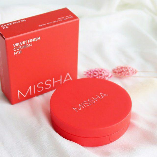 Missha Velvet Finish Cushion với kết cấu vô cùng mỏng nhẹ nhưng khả năng che phủ khuyết điểm siêu đỉnh! Chất kem mỏng nhẹ và mịn màng như lụa, hứa hẹn có thể che phủ tốt các vết đốm, tàn nhang, vùng da không đều màu hay lỗ chân lông mà không gây cảm giác bết dính khó chịu. Missha Velvet Finish Cushion với hai tone màu, cho bạn hai sự lựa chọn phù hợp nhất: No.21 phù hợp với các bạn có tone da trắng sáng hoặc muốn trang điểm nâng tone da. No.23 dành cho các bạn có làn da trung bình đến da ngăm, các nàng thích trang điểm tự nhiên thì chọn màu này nhé! Missha Velvet Finish Cushion với lớp finish mịn màng không bóng, chứa tinh chất rau má, lô hội, cây bách (cypress), chanh và rosemary ( thiên nhiên) cực kì lành tính, phù hợp nhất cho các bạn gái da dầu đó nha!