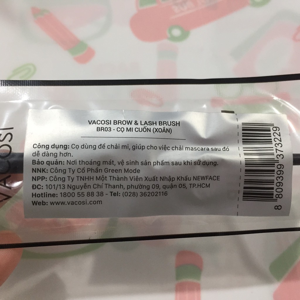 CỌ CHẢI MI XOẮN CUỐN BR03 CỌ MI CUỐN - BR03 Nhãn hiệu: VACOSI Loại sản phẩm: Dụng Cụ Trang Điểm Mã sản phẩm: BR03 Cọ xoắn Vacosi – BR 03 có thể sử dụng cho cả mi và lông mày đẹp tự nhiên, đều màu, không bị vón cục. Cọ mi cuốn giúp cho lông mi của bạn không bị vón cục sau khi chuốt mascara, làm cho lông mi cong và dài tự nhiên. Cọ mi cuốn cũng có thể sử dụng chải chân mày sau khi chải mascara để định hình những sợi lông mày năm ngay ngắn vào khuôn chân mày.
