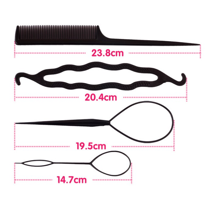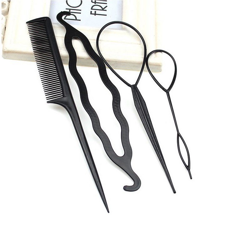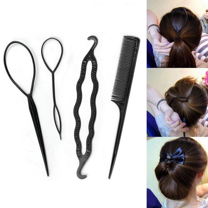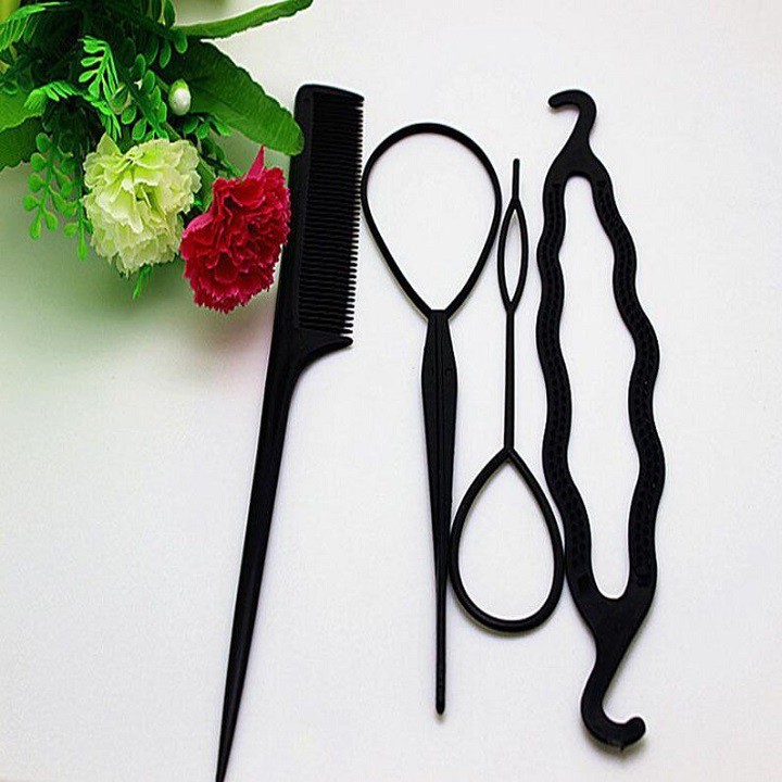 - Combo dụng cụ làm tóc 4 món bao gồm: 2 dụng cụ búi tỏi lớn và nhỏ, 1 lược, 1 kẹp gợn sóng. - Thiết kế nhỏ gọn, dễ sử dụng, cho bạn có thể dễ dàng tạo cho mình những kiểu tóc mới phù hợp nhất khi đi tiệc hay dạo phố. - Chất liệu nhựa, bông xốp cao cấp, không làm đau hay gãy rụng tóc. - Bộ sản phẩm là món quà ý nghĩa dành tặng bạn gái.