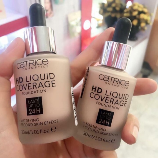 🍎🍎🍎🍎Phấn nền Catrice 24h 🌲🌲 Xuất xứ: Đức chính hãng phát hiện nhái đền lại Tiền. 🍋 Được thiết kế với thể tích 30 ml trong chai đựng với chất lượng cao cấp. Điểm nhấn trong thiết kế của Catrice HD Liquid Coverage Foudation là ống nhỏ giọt với tay cầm bắng cao su giúp cho việc lấy kem và điều chỉnh lượng kem phù hợp dễ dàng hơn. Ngoài ra, thiết kế đơn giản, chắc chắn giúp lớp kem bên trong Catrice HD Liquid Coverage Foudation cũng được bảo quản tốt hơn.. 🌲 Có hai tone 10: tone sáng tone 20 tone tự nhiên nhé ce 🌲🌲 Mách nhỏ với các chị em vì chính e cũng đang sử dụng ạ là dùng kem nên thích cực. Mịn da lắm luôn ạ👍👍 chất kem thì không hề gây nhờn hay bí bách lỗ chân lông và đặc biệt có khả năng giữ đều màu đến 24h nhé 🌲🌲Dùng kem nền này là 1 lựa chọn tuyệt vời vì ngoài tác dụng make up ra em nó còn có khả năng nuôi dưỡng làn da và đặc biệt hơn là bảo vệ da khỏi tác hại của tia cực tím SPF 25 và tác động xấu của môi trường